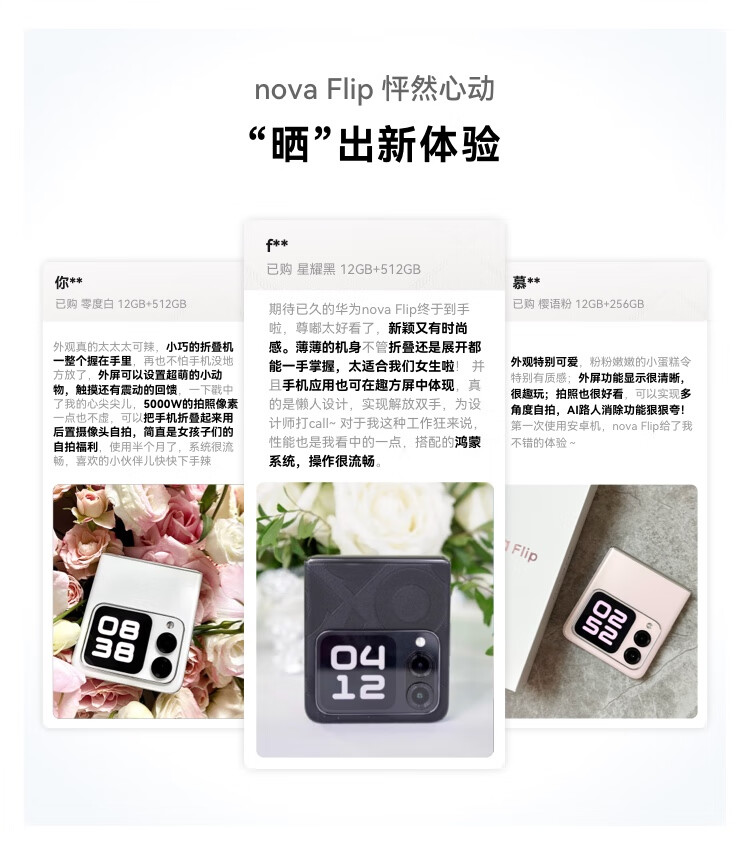 华为nova Flip全网通 全新未激活全网通双卡双待小折叠屏大内存智能原装正品行货手机 星耀黑 12GB+256GB 全新联网报销量