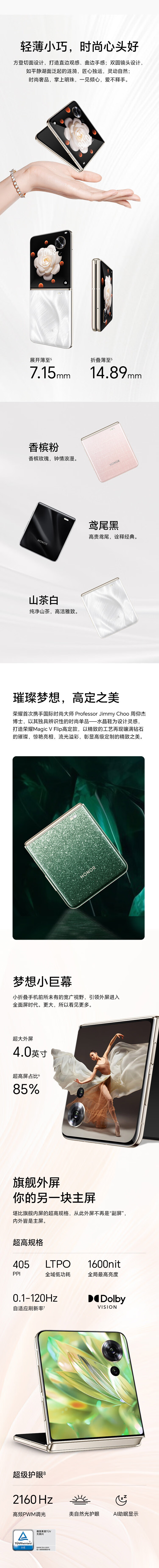 HONOR荣耀MagicVFlip新款小折叠屏手机4.0英寸大外屏单反级补贴 山茶白 12G+256G 赠运费险|详情咨询客服