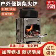 欧梵普(oufanpu)户外露营便携柴火灶野餐炉不锈钢折叠方形烧烤炉野餐烧烤架取暖炉 柴火灶小号21*14*14