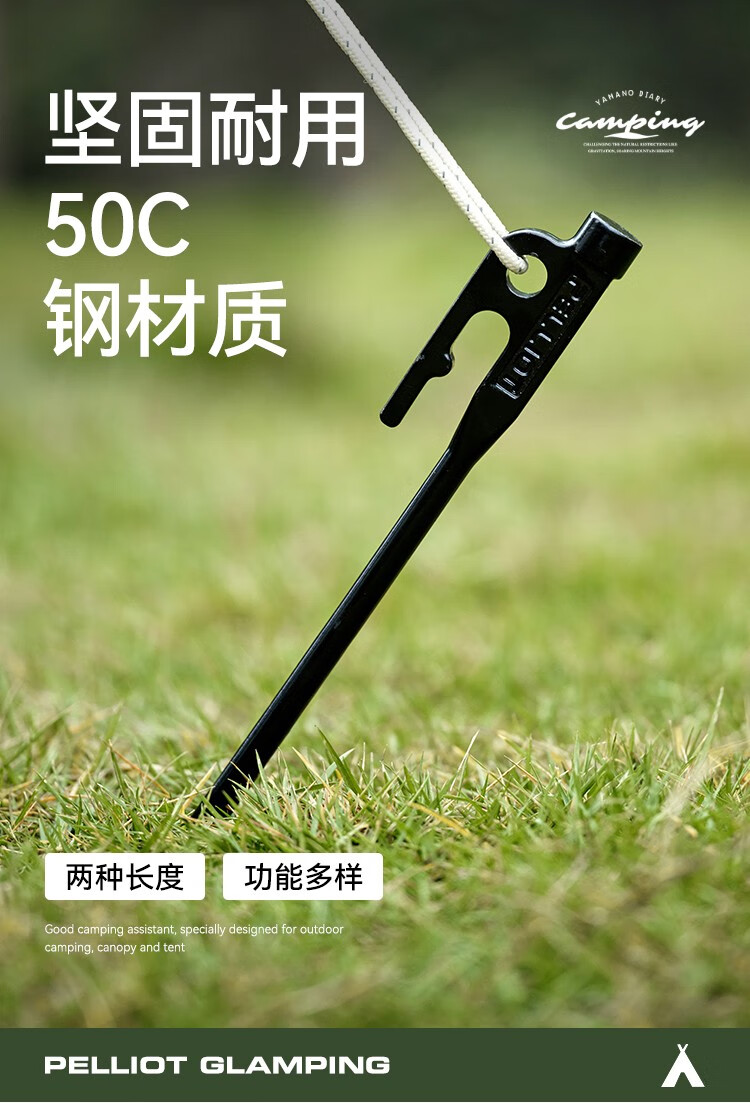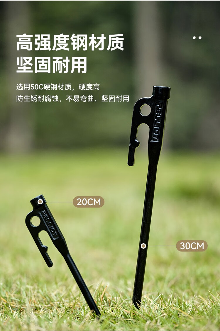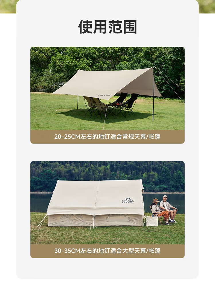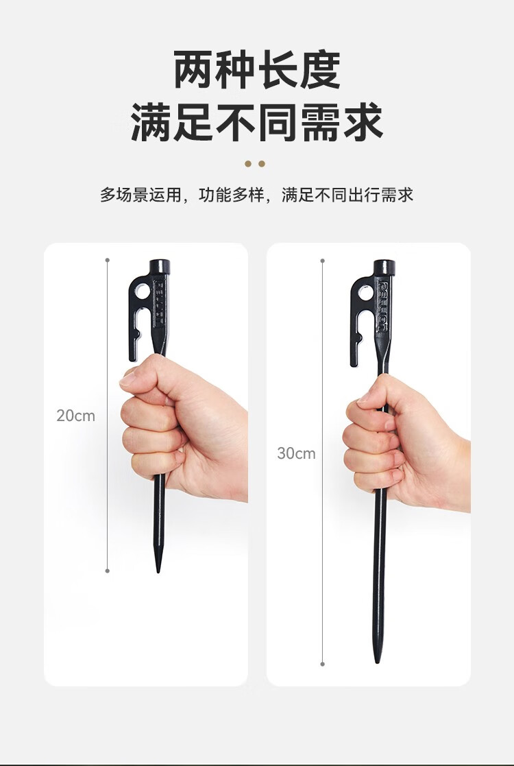 伯希和(Pelliot)户外露营帐篷地钉天幕地钉防风钉子风绳套装地插营钉【单只装】 20CM曜石黑【单只装】