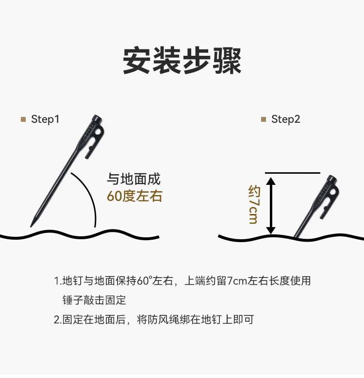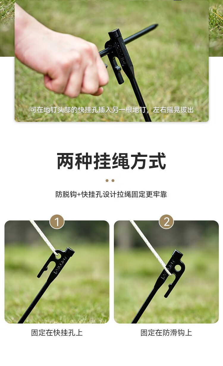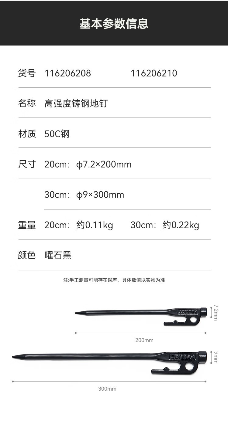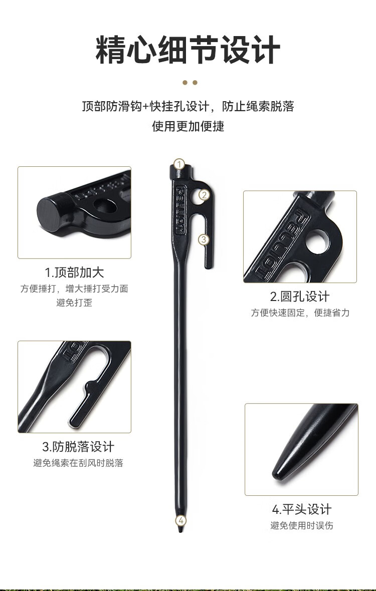 伯希和(Pelliot)户外露营帐篷地钉天幕地钉防风钉子风绳套装地插营钉【单只装】 20CM曜石黑【单只装】