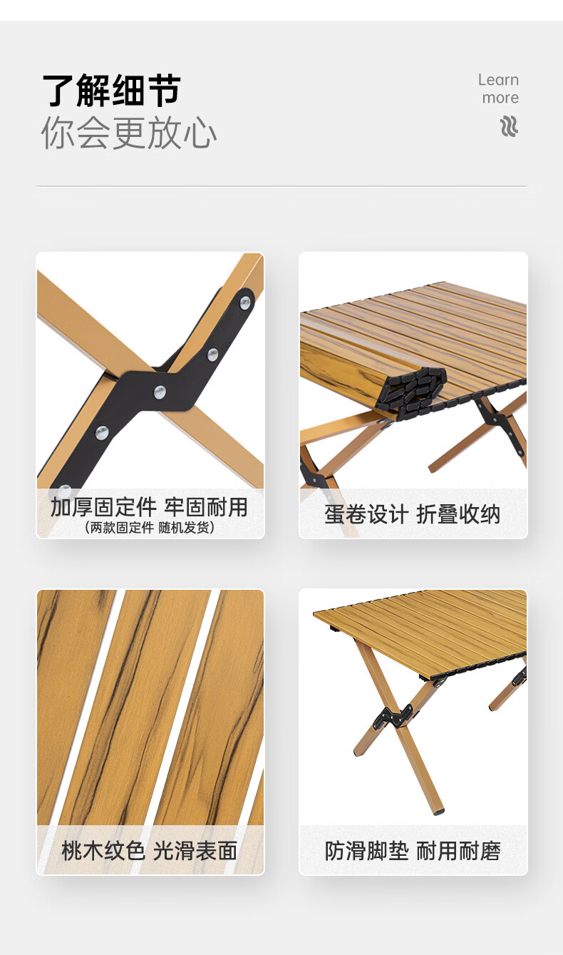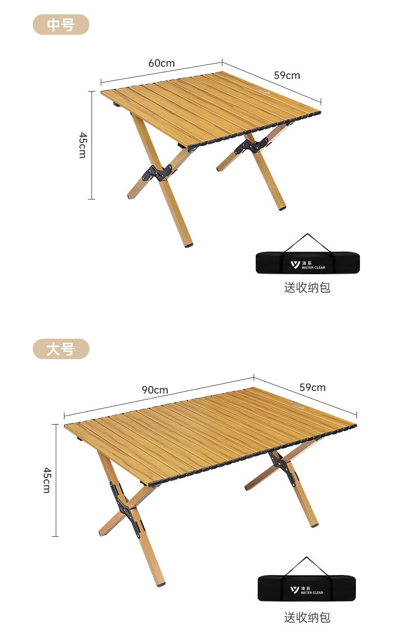 清系便携式露营桌子野餐可折叠克米特椅野营用品装备户外折叠桌蛋卷桌 桃木色特大号120款