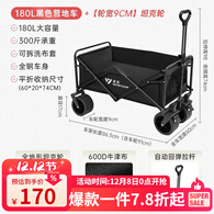 清系 户外露营折叠车野餐车营地车露营装备便捷拖车推车购物旅游买菜 180L 有刹车 黑色坦克轮