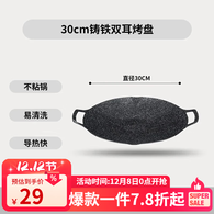 清系户外露营烤盘麦饭石卡式炉烤肉盘韩式铁板烧烤盘家用烤肉锅煎烤盘 30cm铸铁双耳烤盘