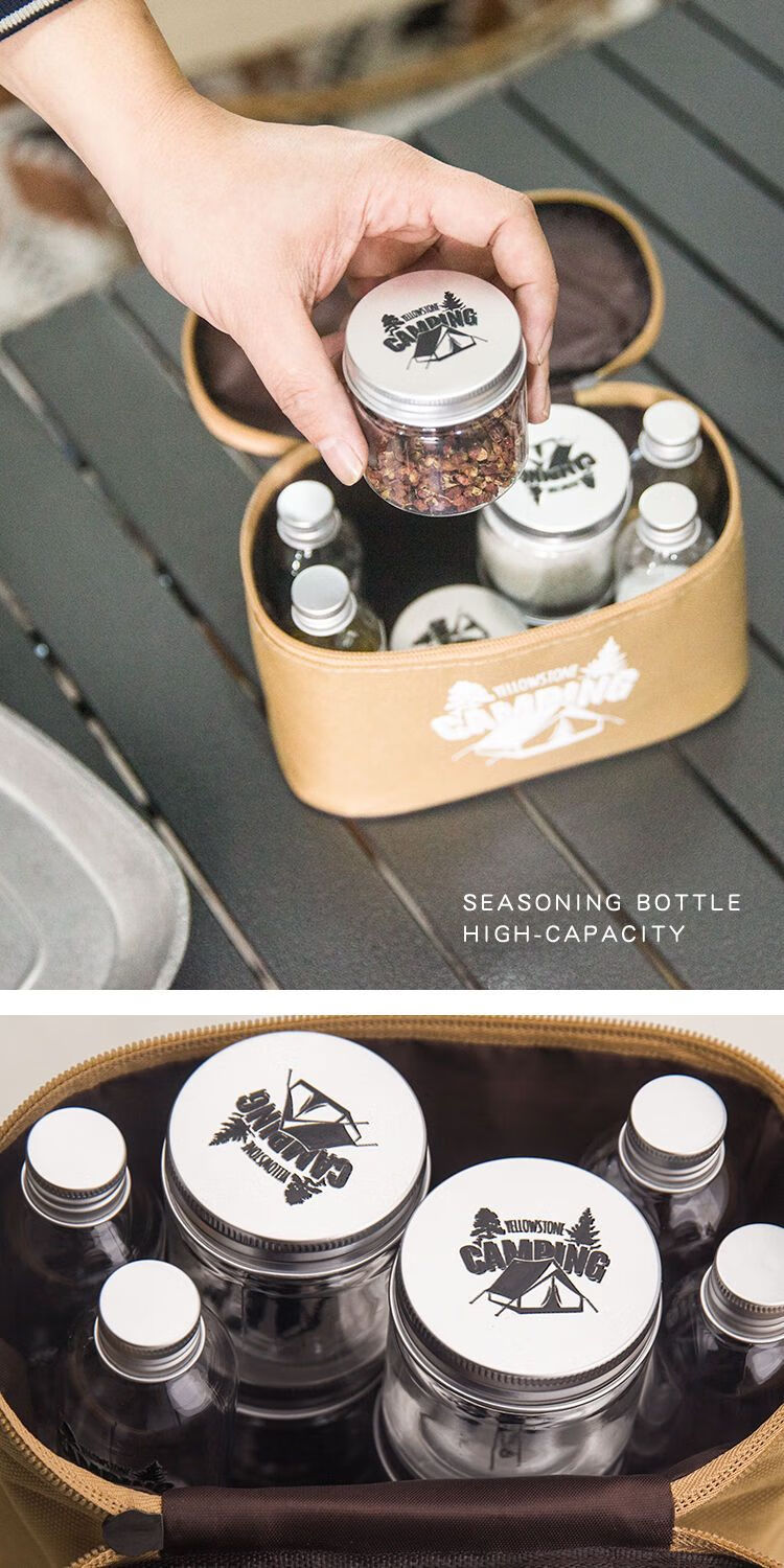 云舵户外便携调料瓶套装露营食品级调料分装罐密封外出组合防潮收纳包 【四瓶四罐+收纳包】