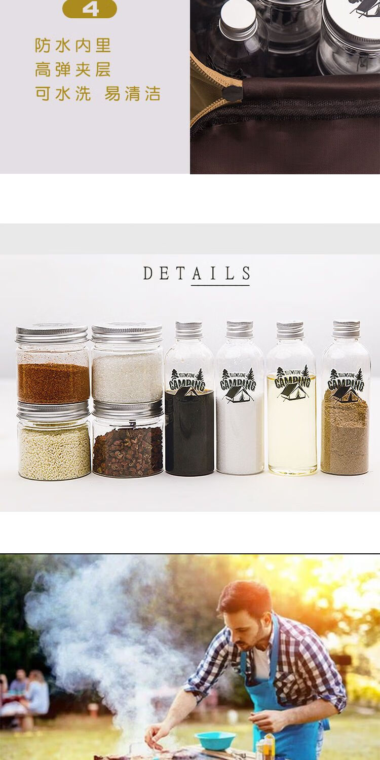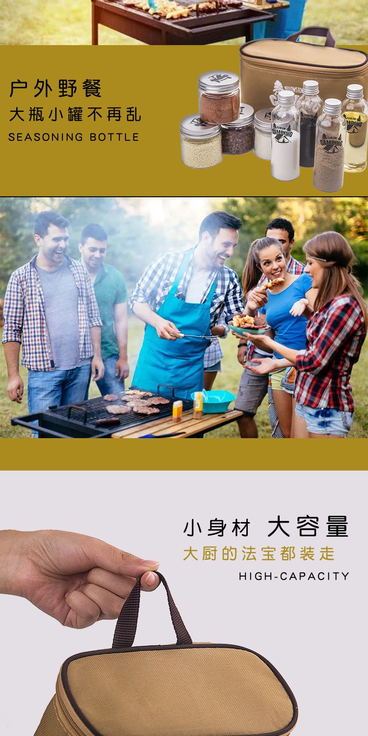 Nobana户外露营调料瓶收纳包含9个玻璃调味瓶烧烤调味瓶组合套装帆布包野餐调味包便捷式易收纳套装 帆布调料包军绿色含调味瓶