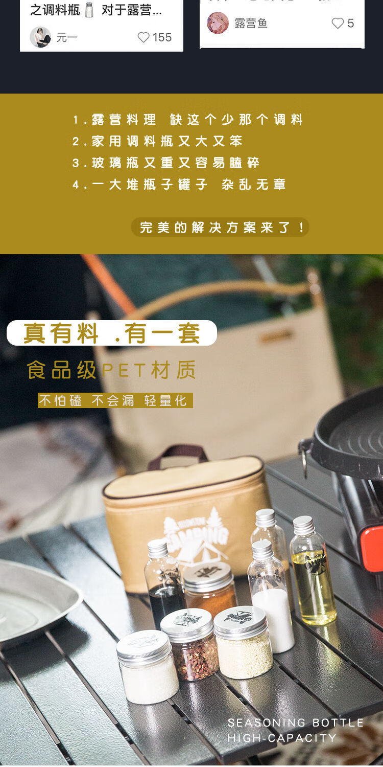 实物与描述的一样,质量相当好,卖家态度也好,有问必答,发货速度杠杠的,值得购买哦 轻便小巧,适合露营带调料。占空间也不大。