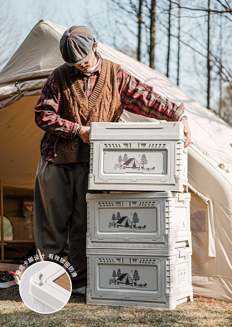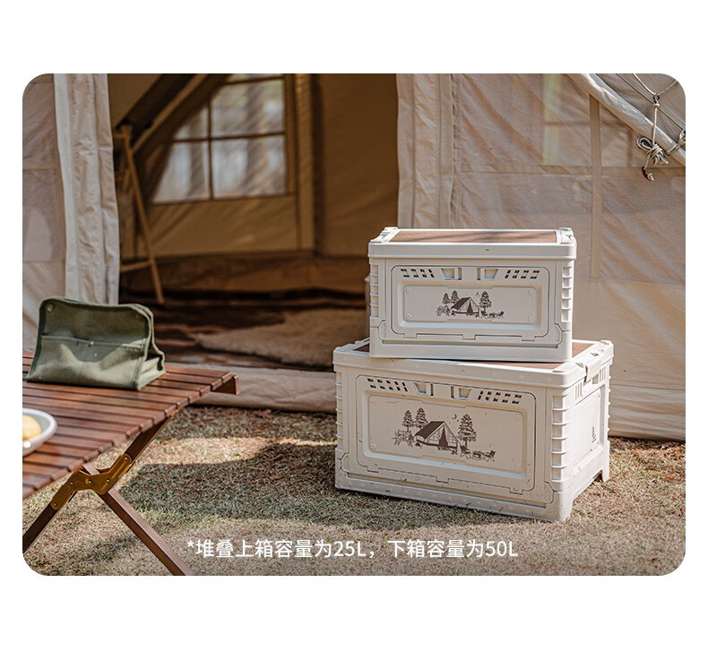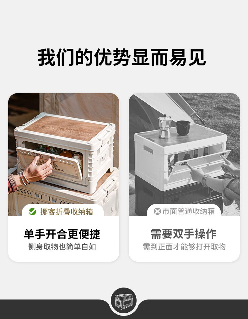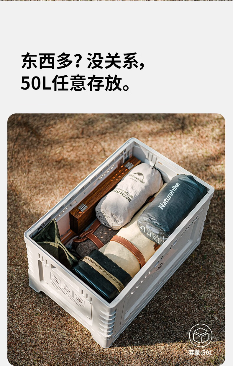 NatureHike挪客凌越S户外PP大容量收纳箱精致露营便携折叠箱野营家用储物箱 浅米灰50L