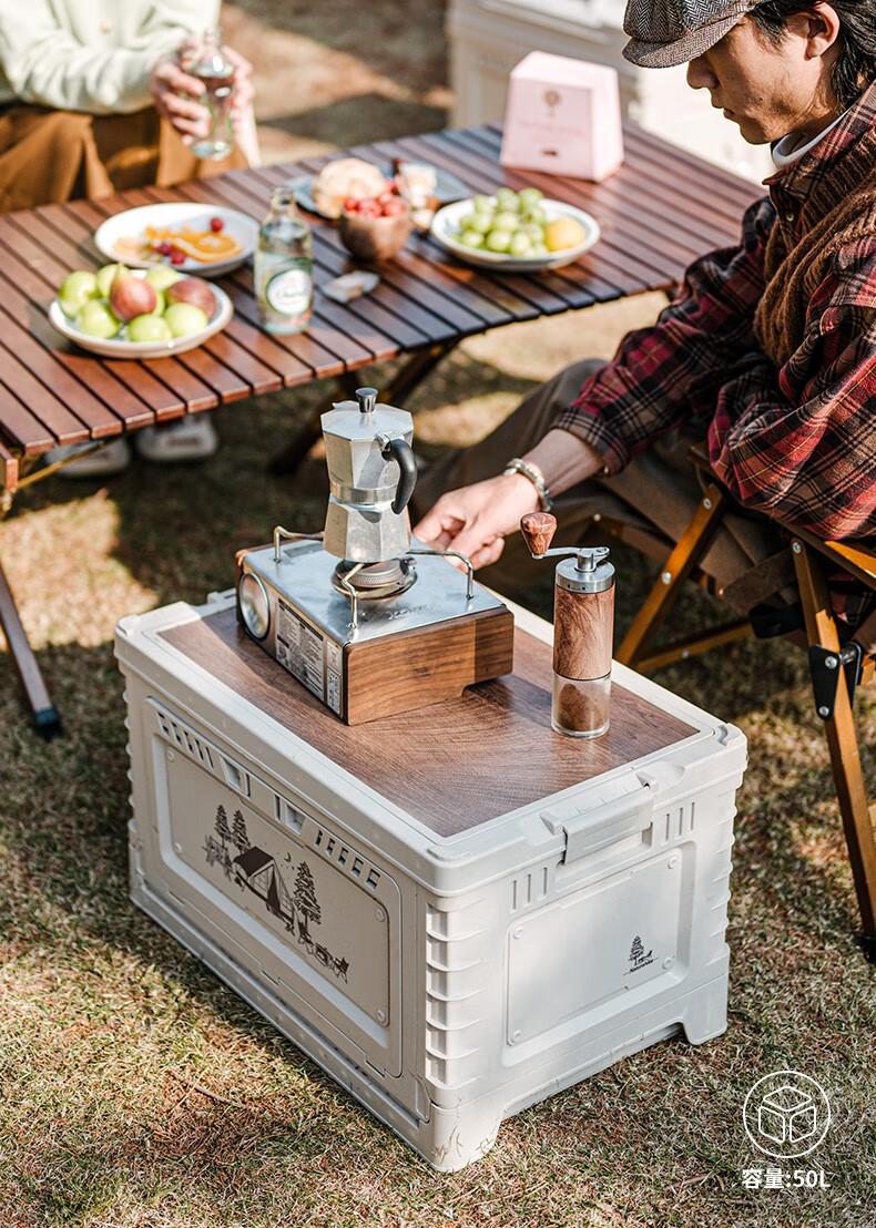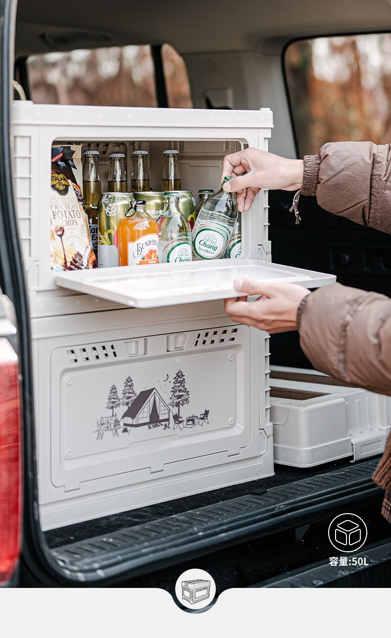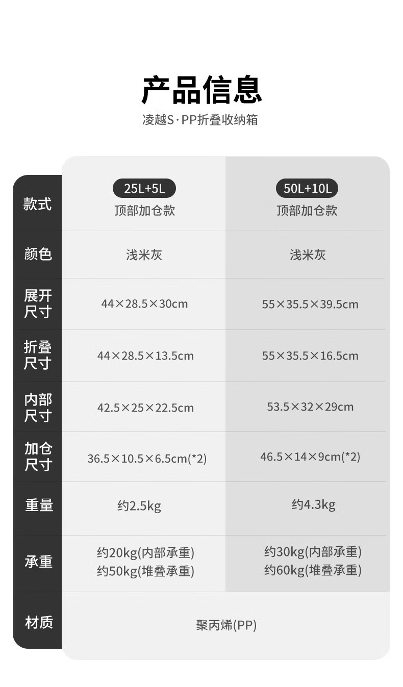 NatureHike挪客凌越S户外PP大容量收纳箱精致露营便携折叠箱野营家用储物箱 浅米灰50L
