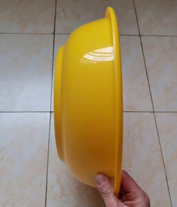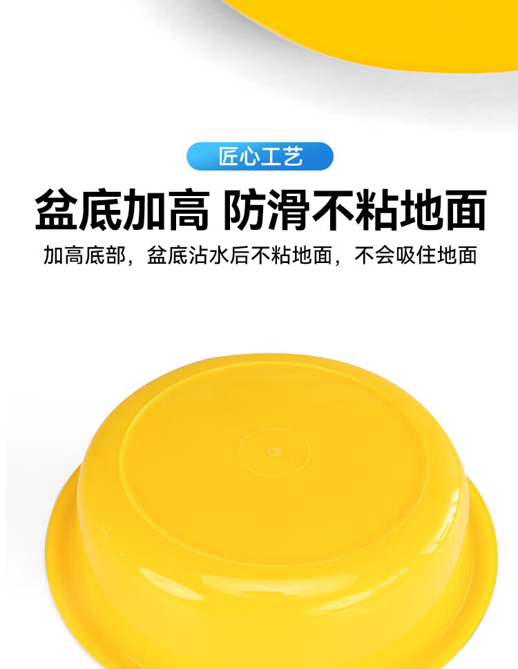 非常好的塑料盆,黄色塑料盆还不太好找,买的比较少,这个塑料盆的厚度非常合适,非常厚,拿起来感觉很结实,用的几年应该没问题,非常不错的盆推荐购买