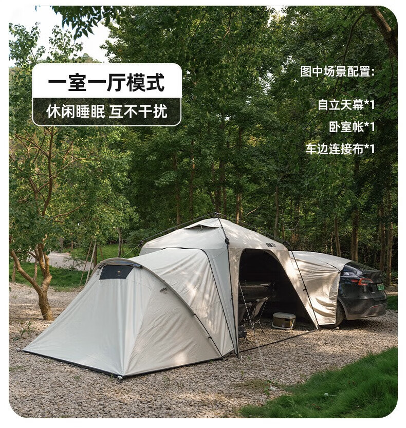 探险者车边天幕帐篷侧帐自立速开户外露营黑胶穹顶帐篷防晒防风遮阳棚新 【钛黑胶】速开自立天幕米白