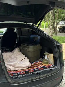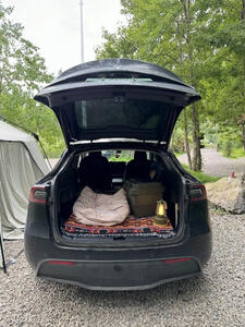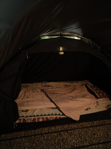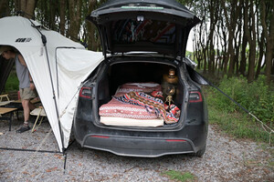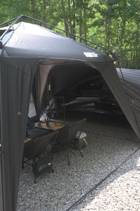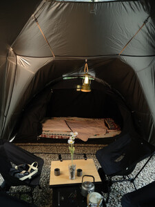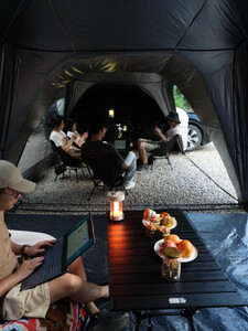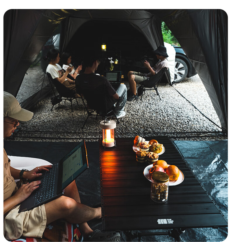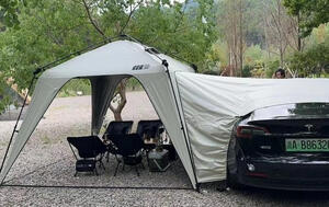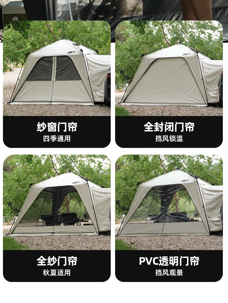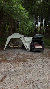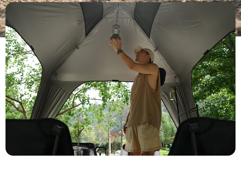 把门封上电车打开空调,夏天的晚上温度还是很舒服的。搭建简单,第一次搭建,20分钟左右就搭建完成了,收拾起来也不难。这个凉棚单用也很好用,如果是不过夜的话,单独拍个凉棚就好了,很高很大,容纳8个人估计也没啥问题。里面都是有挂点的,从凉棚开始入手慢慢升级也很有乐趣