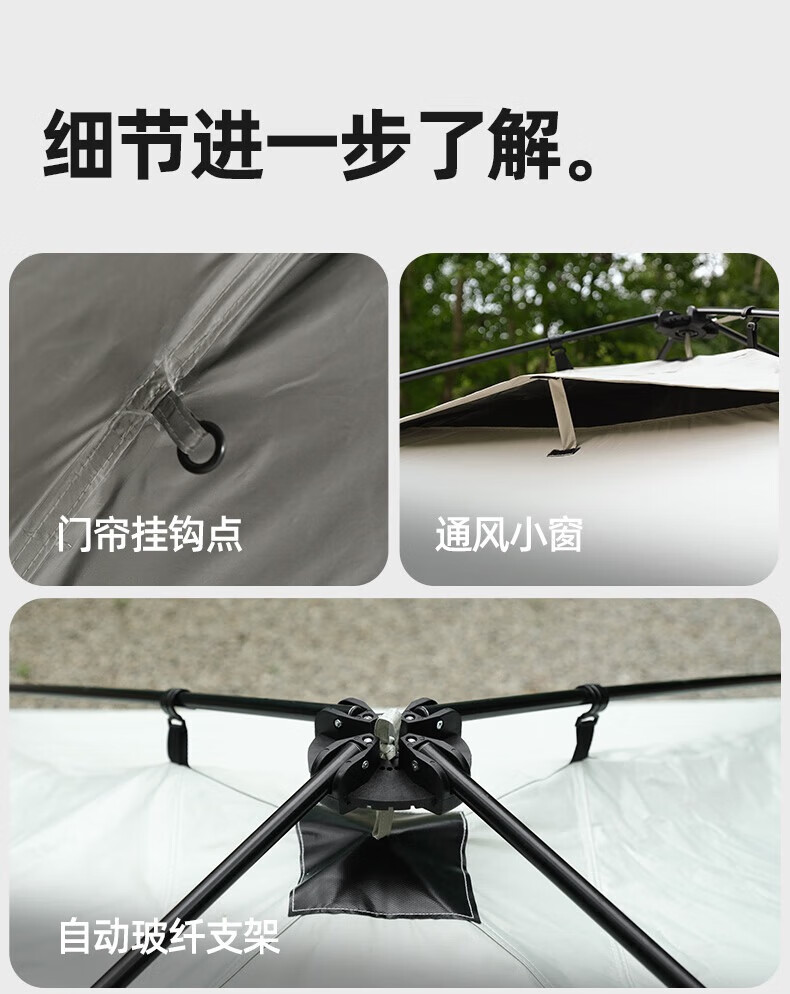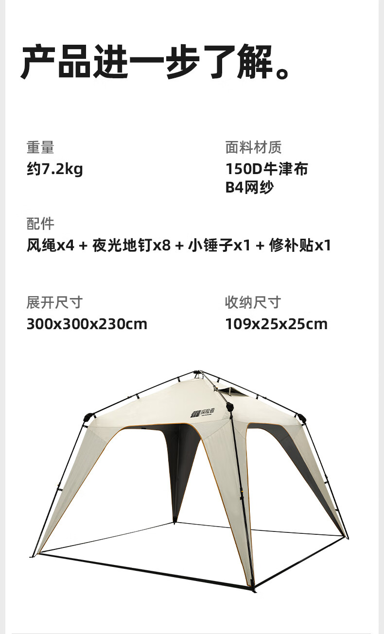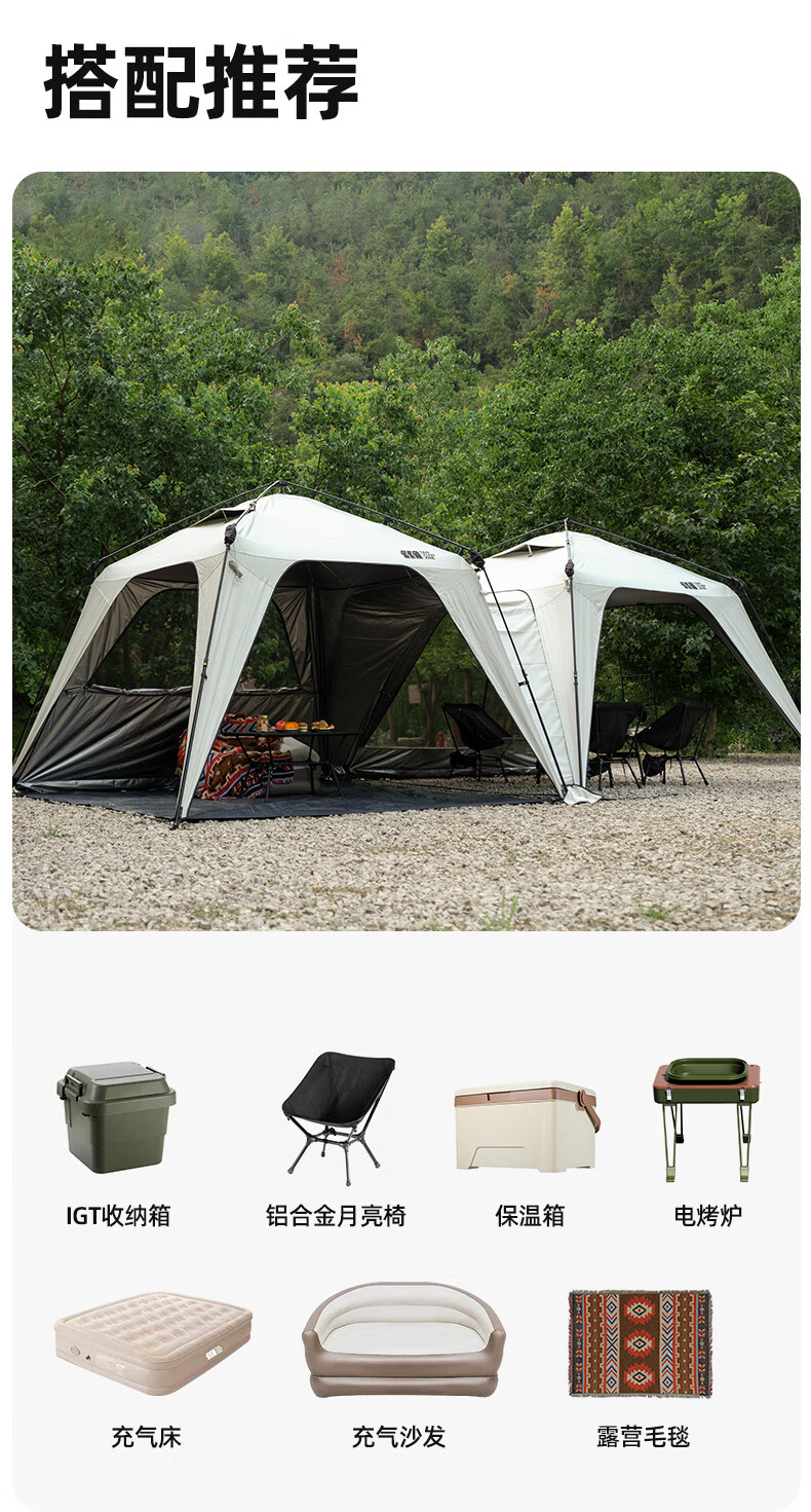搭建很简单,搭起来很牢固,不用拉绳子,跟从车连在一起很方便,露营买这个非常的不错,满意