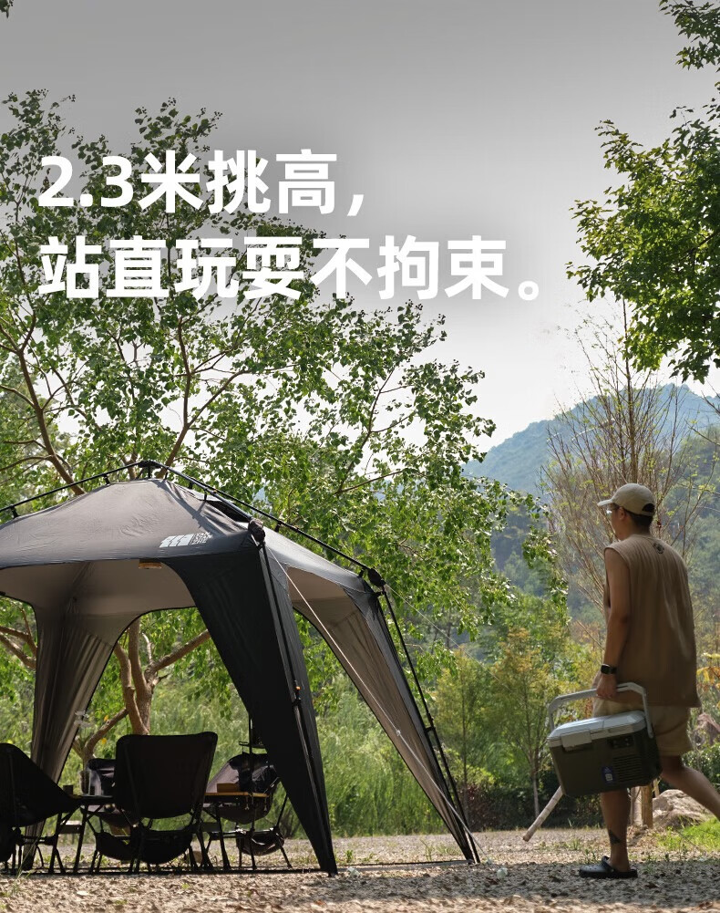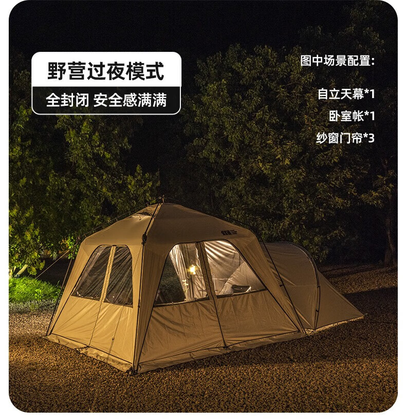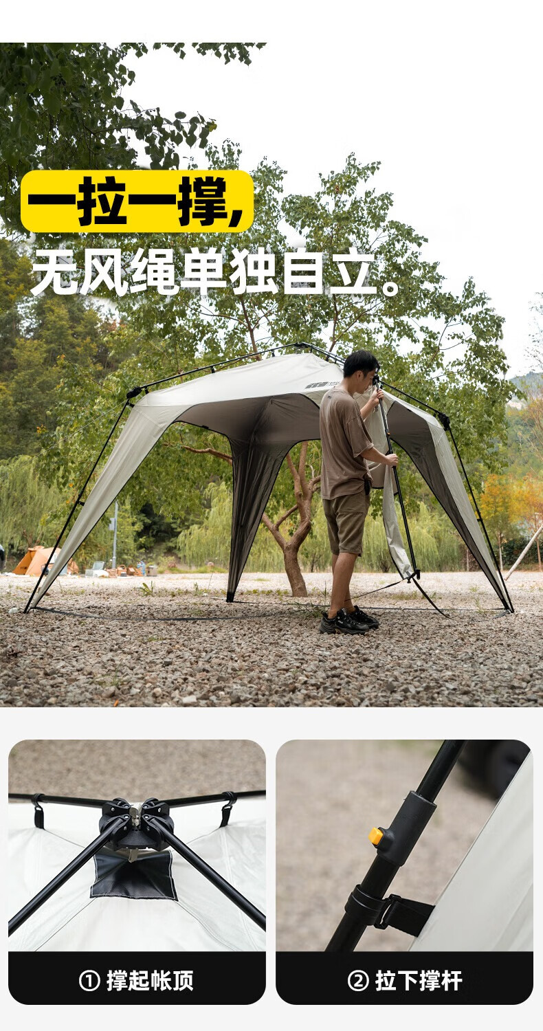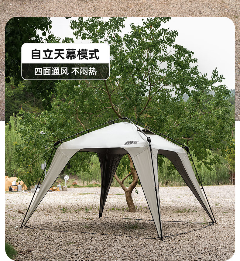 何佳功新燕尾天幕户外露营懒人免安装加厚黑胶防晒遮阳防雨速搭天幕 速搭型12㎡银胶天幕3.3*3.6米2-4人(1