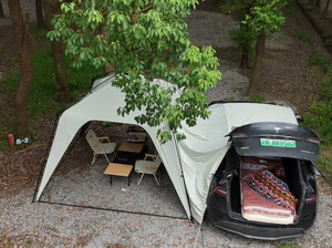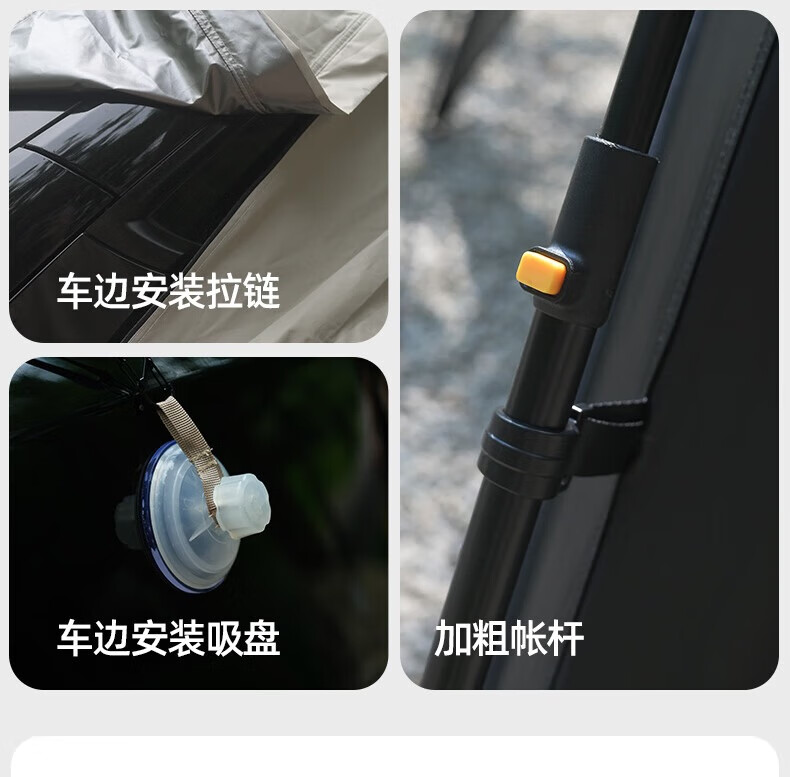 车边帐篷太好了,做工精细重量好,帐篷与车结合也很紧密,打开收起都很方便!刚开始不熟练,后面摸多了就熟了与车贴合很好,空间适中相当于一间小亭子,可以放下一套桌椅,可以做饭,还能休息,布料很厚实,防雨肯定不错,搭建方便