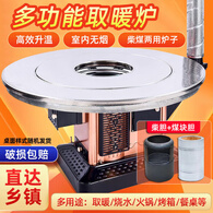 盛火农村烤火炉加厚柴火炉室内取暖炉烧柴回风炉家用煤炭柴煤两用炉 1.4米不锈钢平转【柴煤两用】