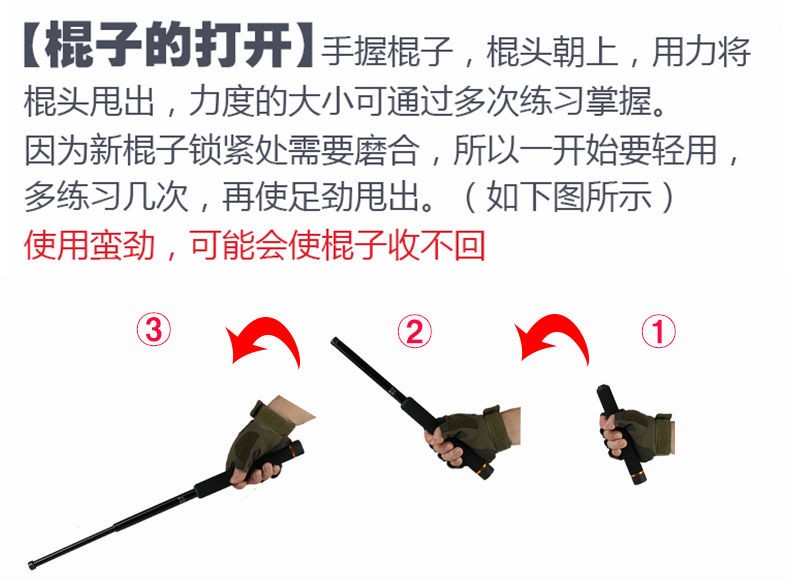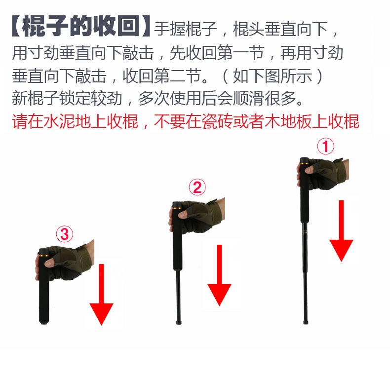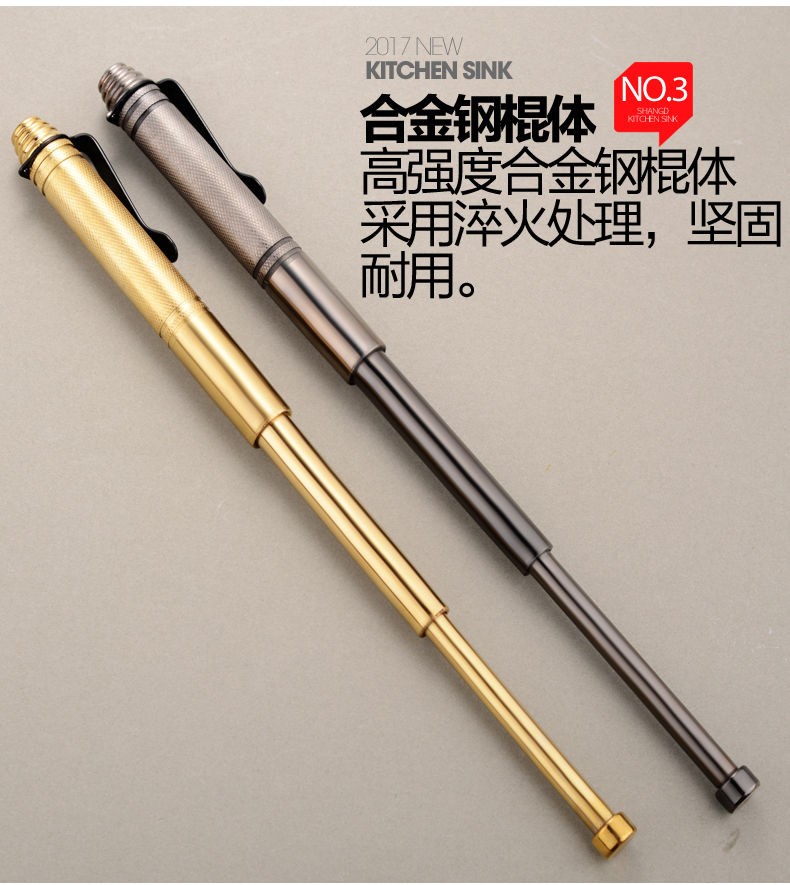 捷骜 迷你伸缩三节小棍棒自卫合法防身特工用品棍子棍棒 钛金+棍套