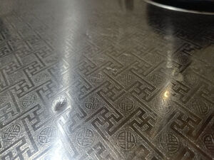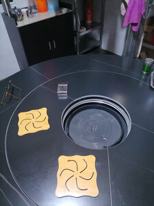 买的带转盘的,不锈钢很厚,不塌不变形,炉子也蛮重,要两个人抬,总体质量不错,值得推荐