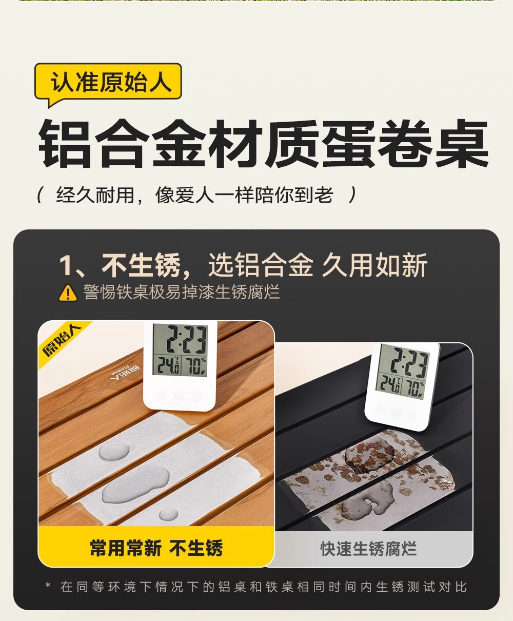 买的120的大的蛋卷桌,发现原始人这个品牌的露营装备质量不错,和其他品牌相比价格也算是相对较低,同样价格其他品牌桌面是单层的,有些便宜的蛋卷桌架子不是铝合金。一分价钱一分货,虽然觉得贵,还是推荐购买。还有卖家服务也很不错。值得购买