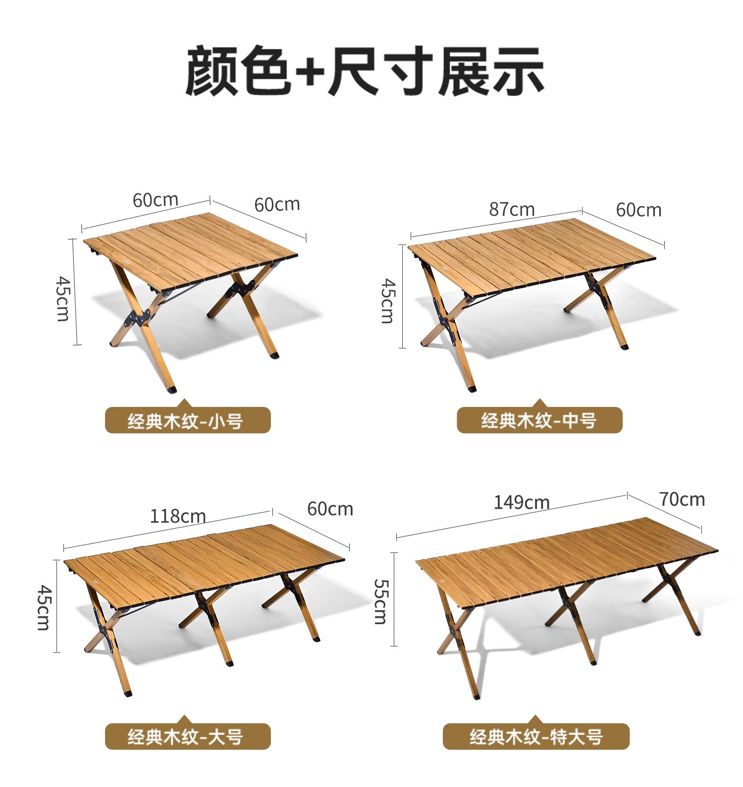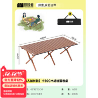 探险者户外桌椅蛋卷桌露营折叠桌椅全套便携月亮椅野餐一桌四椅户外套装 3-8人加长款--150CM胡桃蛋卷桌(送收纳包)