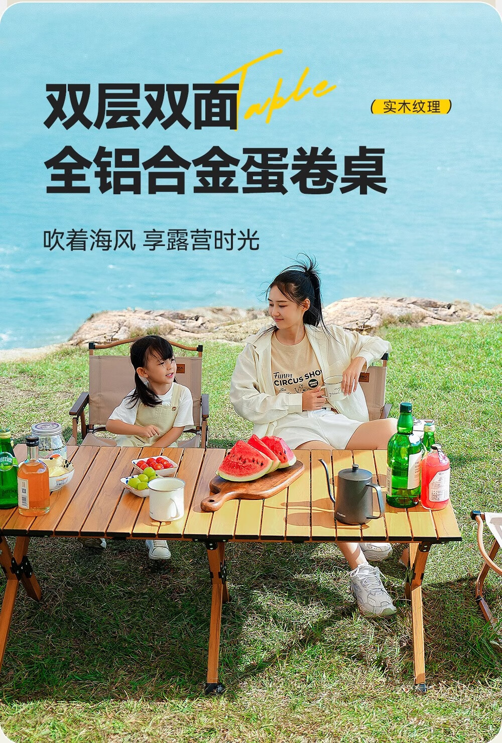 原始人户外桌椅折叠桌铝合金蛋卷桌露营桌子便携式野餐桌装备全套 150主图款-【双层双面】铝合金