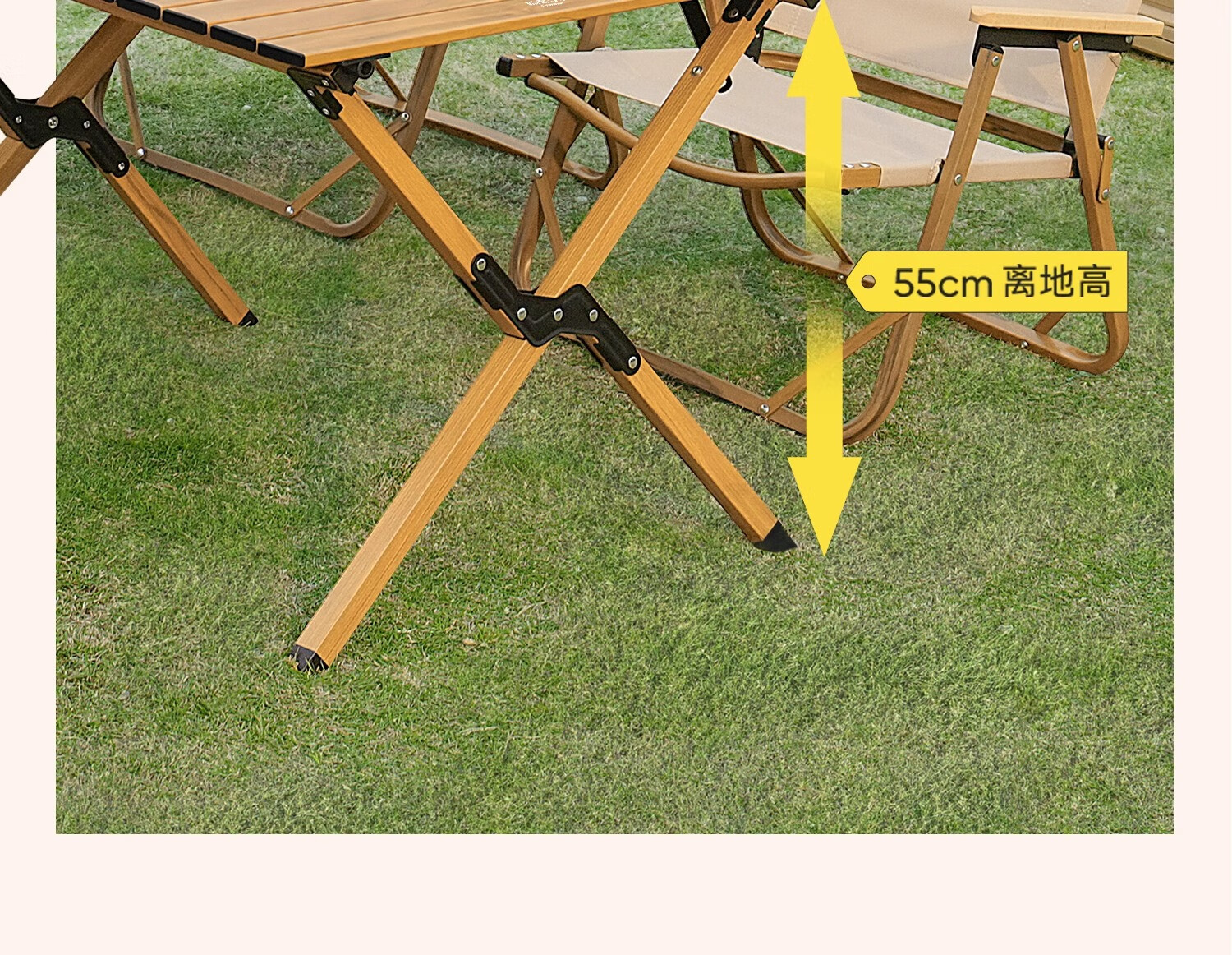 山扉山姆同款蛋卷桌滑轨蛋卷桌铝合金户外露营桌便携野餐野营桌 滑轨蛋卷桌 卡其色