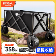 原始人露营推车户外营地拖车便携折叠手推野餐野营快递手拉车遛娃小拉车 300L 聚拢款曜黑-特粗钢架+双刹万向快拆越野轮