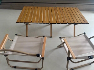 铝合金桌面承重更强,更耐腐蚀,桌面容易打理,腿脚坚固不容易变形,椅子很坚实,坐着也很舒服,运输过程中有一块拼接面板轻微受压凹陷,但是不影响使用,不管居家用还是外出用,都是不错的桌椅套装,值得拥有。