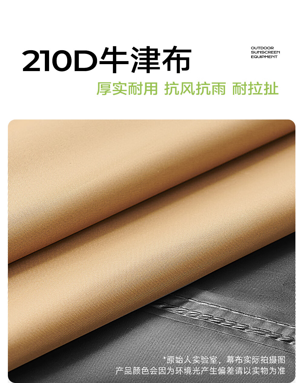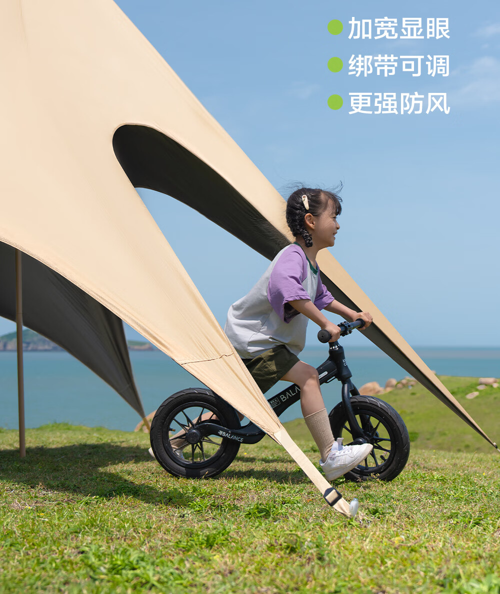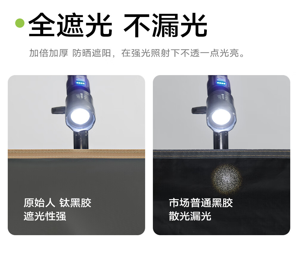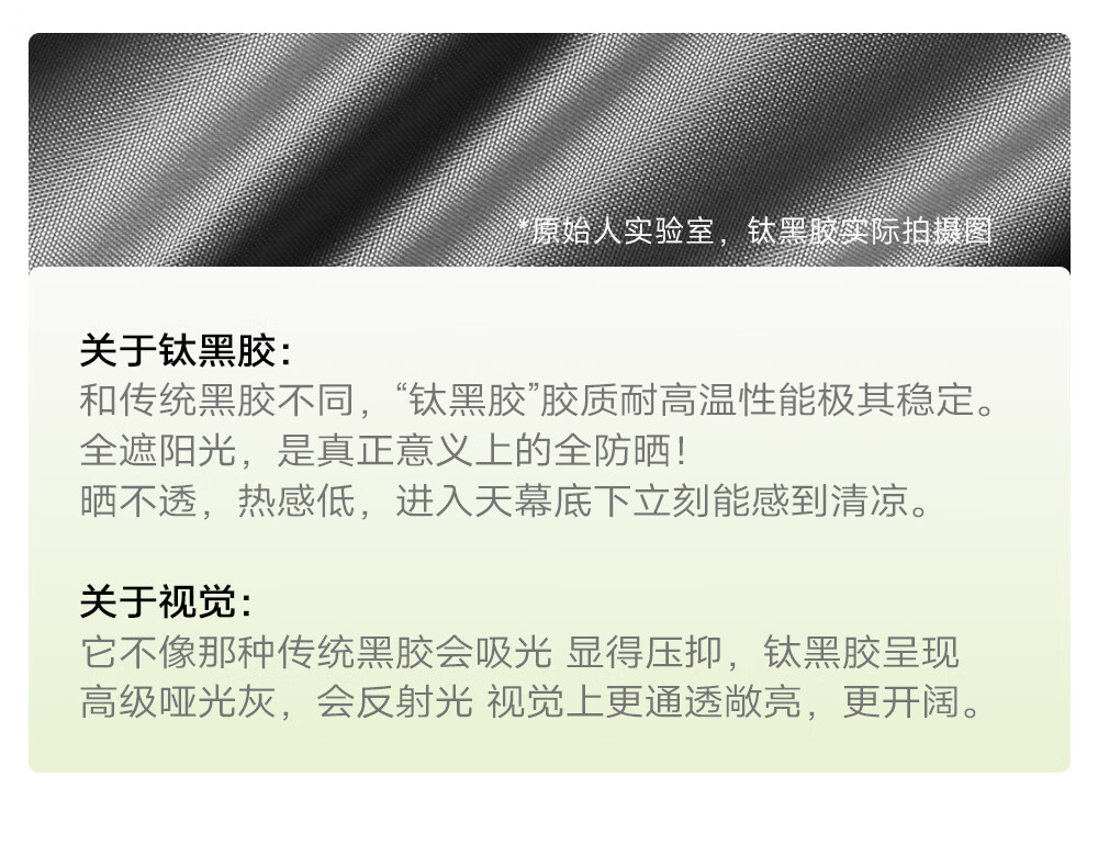面料厚实遮光强,钛黑胶涂层确实有用,坐在天幕下体感明显比外面凉,孩子玩得很开心。中午正晒的时段,天幕下面也凉快很多,光线也很柔和,不刺眼。