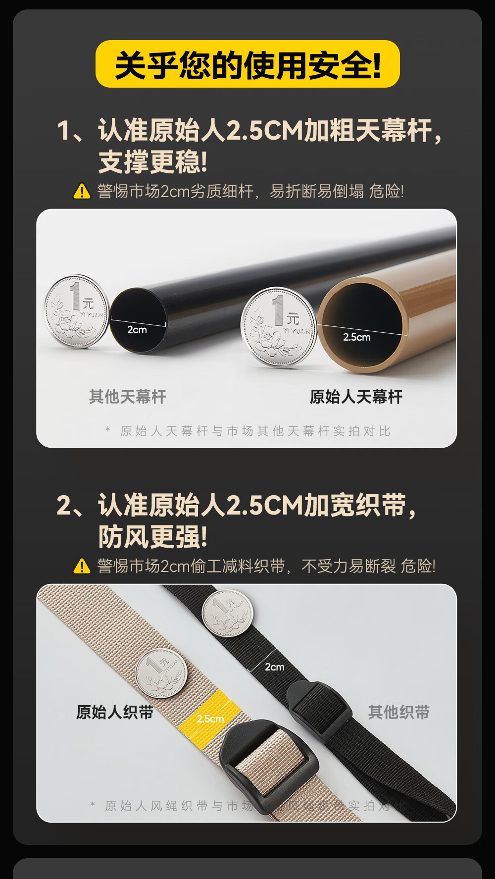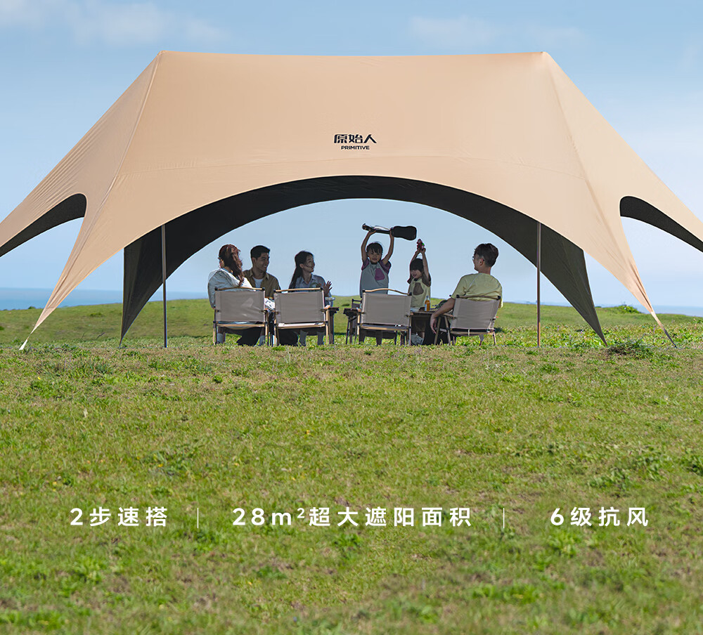 原始人的户外装备质量都特别好,之前买了一个28 平的,有点小,又买了一个35 平的比较好,搭建质量好,出门露营带着特别方便很满意