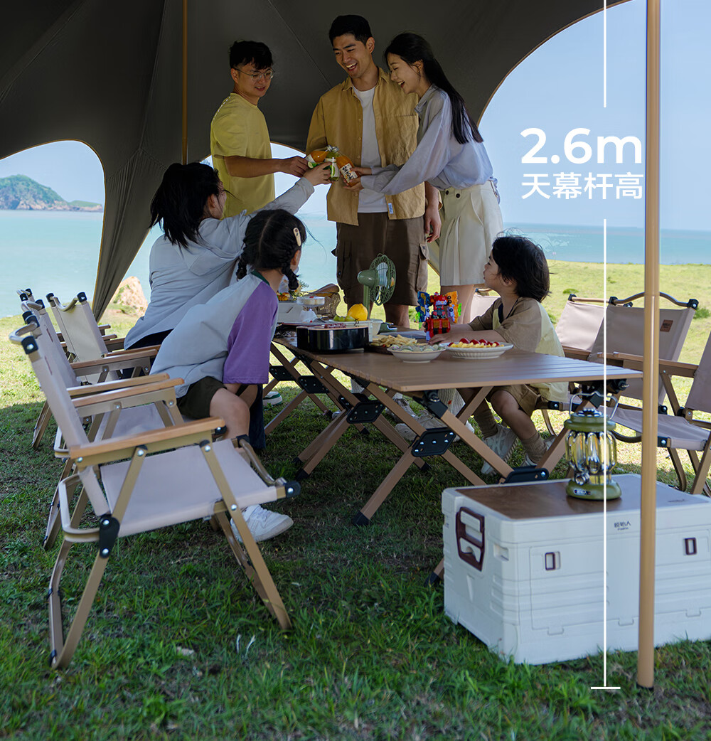 牧高笛(MOBIGARDEN)俊庭黑胶天幕 户外露营蝶形防晒遮阳布防雨大空间黑胶天幕 俊庭黑胶PO520天幕*1+月亮椅*4+碳钢蛋卷桌L套餐