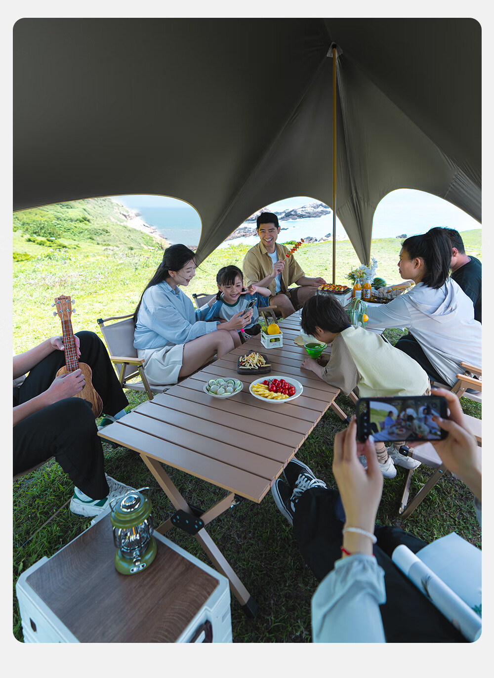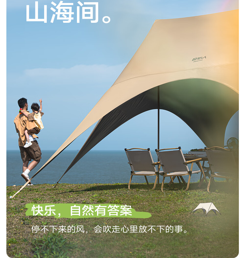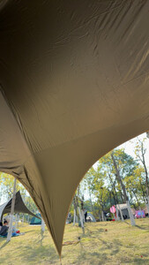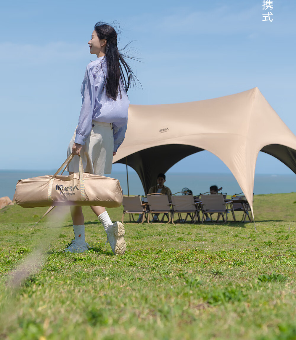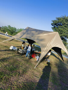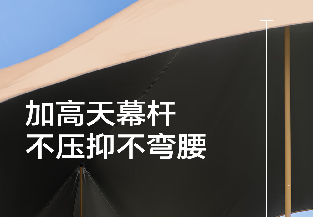 非常好的一款天幕,搭建方便,超级大,奶咖色实物比照片还高级,搭在草地上特别好看,很出片。最喜欢的是它钛黑胶材质,很高级,然后天幕底下也不会黑。