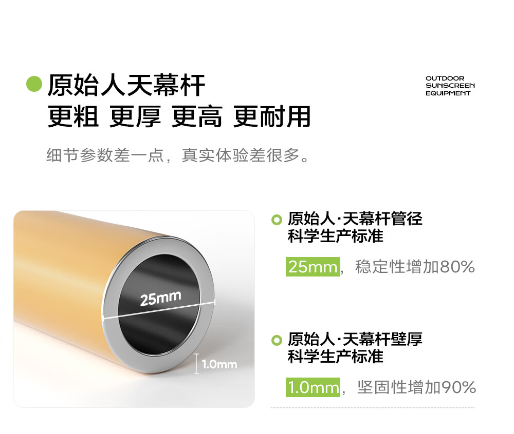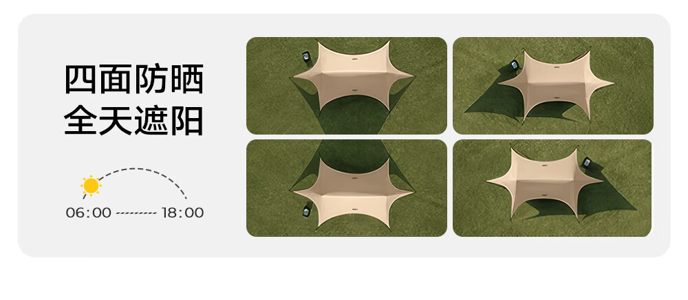 天幕收到之后打开确实不错,很厚实,有重量,不是那种轻飘飘的感觉,全包围的设计很新颖,颜值非常高,遮阳效果得到了很大的提升。