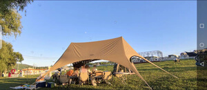 天幕非常的大,价格也是很实惠,对比了几家最终选择了这家的天幕。感觉天幕和帐篷比,在户外活动天幕会更加实用一些。收纳起来也不大,非常方便携带。