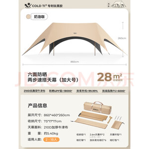原始人天幕户外帐篷露营黑胶遮阳棚新型速开野营2025新款遮光新式遮阳棚 28㎡奶油咖一桌四克米特椅套餐