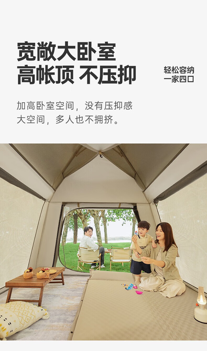 帐篷开合很方便 一个人也可以搭建,里面和遮阳空间大 一家四口完全没问题