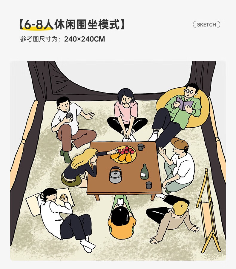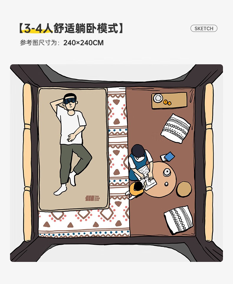 户外帐篷颜值相当高,宽敞度大,透风度都不错,又购买了爬爬垫面料厚实舒适很赞,^_^孩子们要睡在帐篷里,推荐购买👍