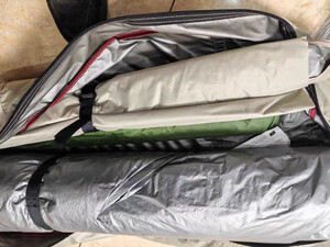 按照视频 先搭建的帐篷,已经成功一半,还需要把地钉防风绳绑起来,安装还是简单的,液压弹簧设计,天幕也是同样的方式😃