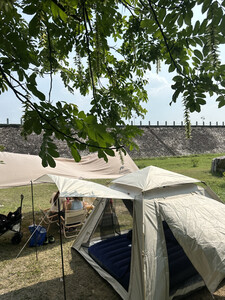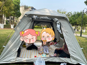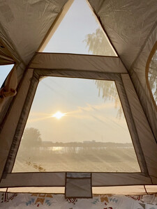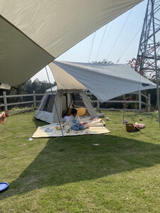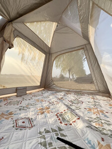 🎈收到就出去露营了,帐篷可以自动充气,单独补差购买了充气泵,只要一键就自己充气了;等待个1-2分钟的样子帐篷就自立了,全程几乎不用🖐双手🖐,非常方便快捷;内部空间超大的,再加上全景的落地窗和细腻网纱,真的很nice 😻挺上镜的~