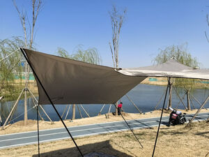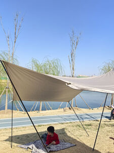 柏潮户外天幕便携加厚黑胶银胶野营野餐抗风防雨遮阳棚露营装备 卡其色 涂银款天幕防雨送全套工 方形长0.36*0.36米丨1人用