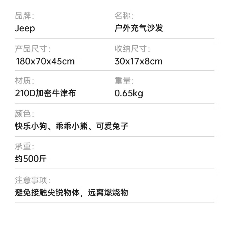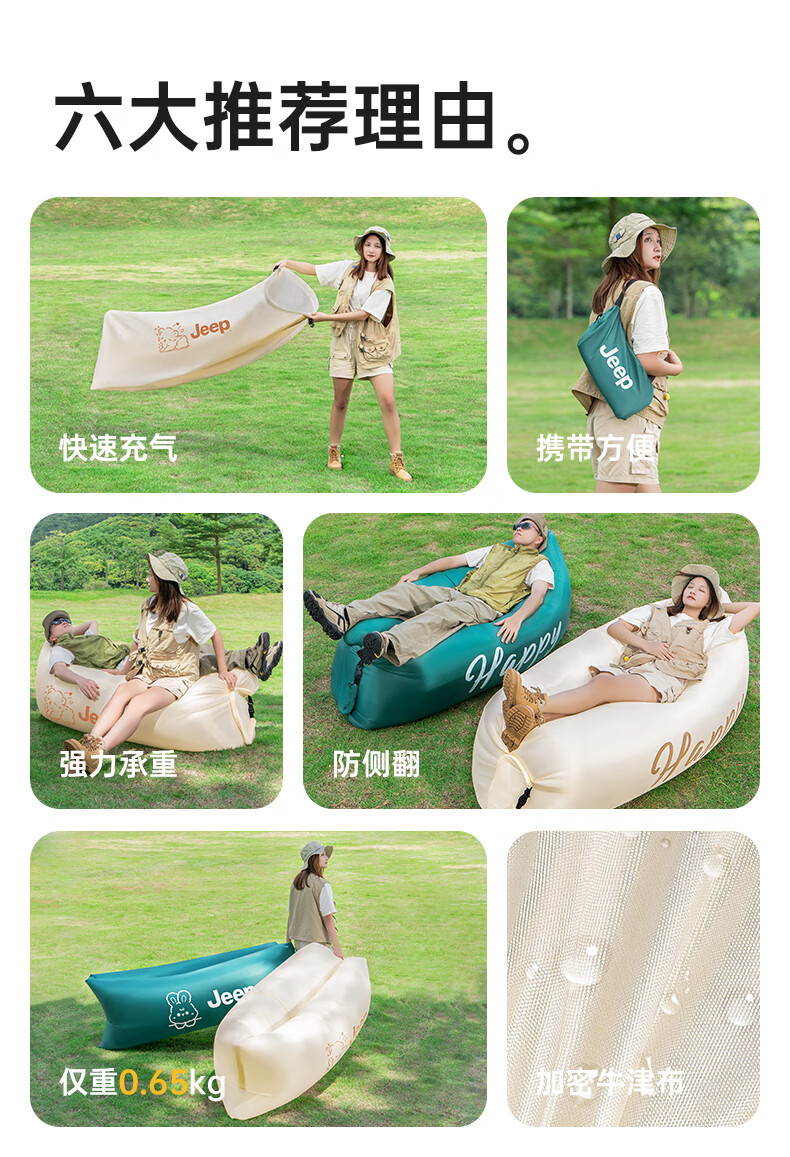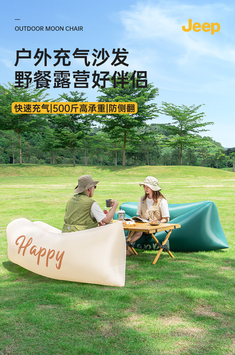 JEEP户外便携式户外充气床垫懒人沙发打地铺野露营家用充气沙发床垫 【欢快小狗】承重500斤_防水防撕