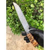 雨轩户外瑞典钢锻打拼接櫻花纹直刀户外小刀扭纹钢打造前后护手組合手柄
