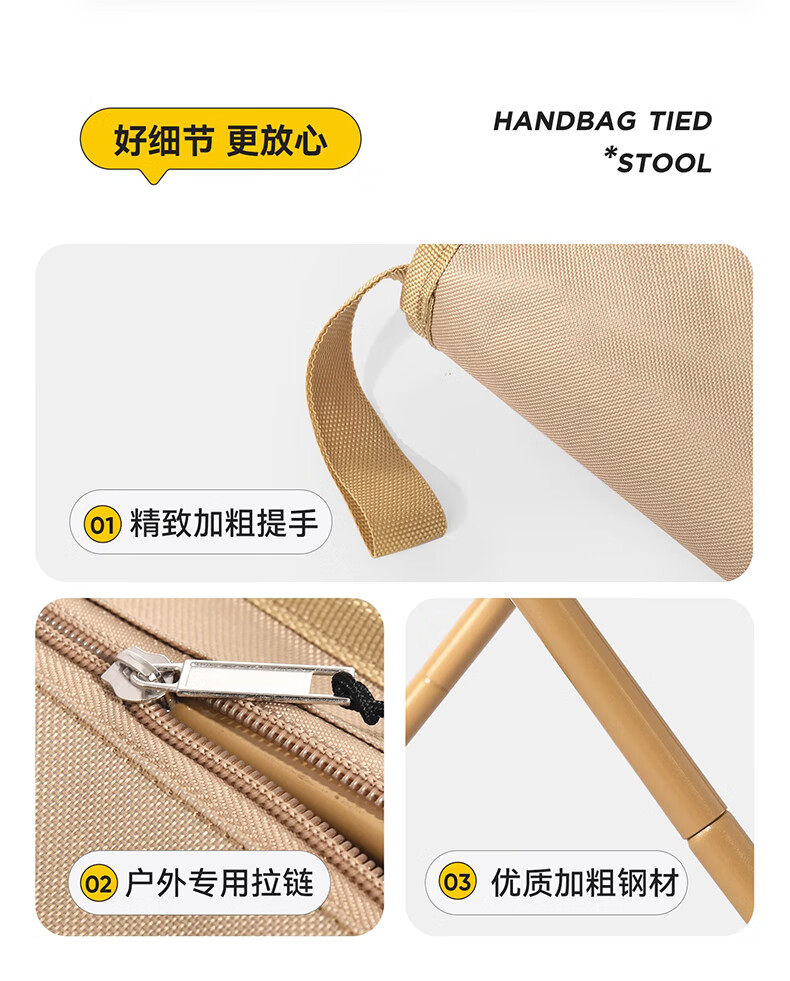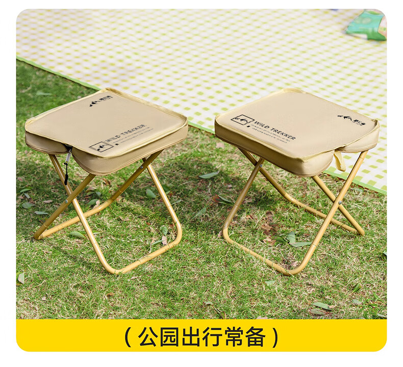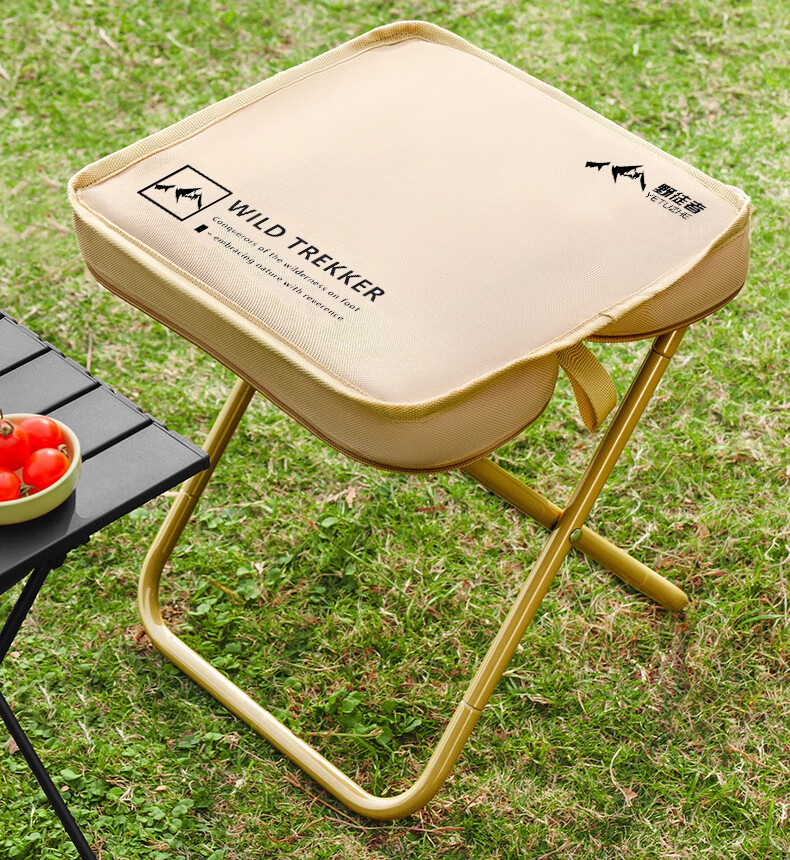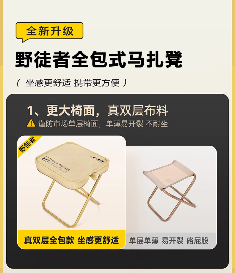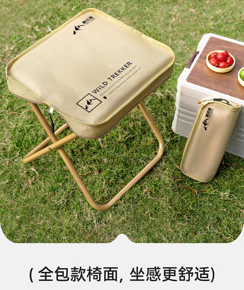 野徒者户外折叠凳子露营便携式小马扎折叠椅排队手包钓鱼椅子野餐用品 卡其色【超大号】 出口品质