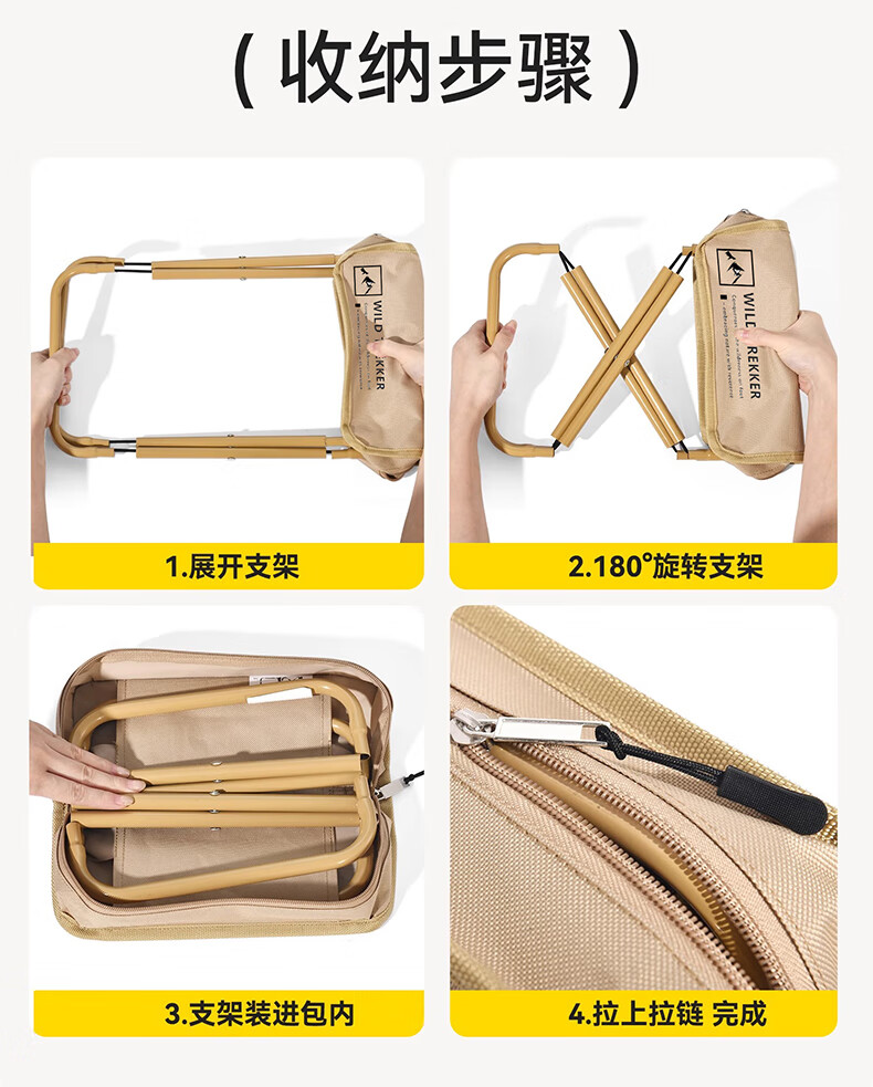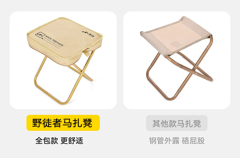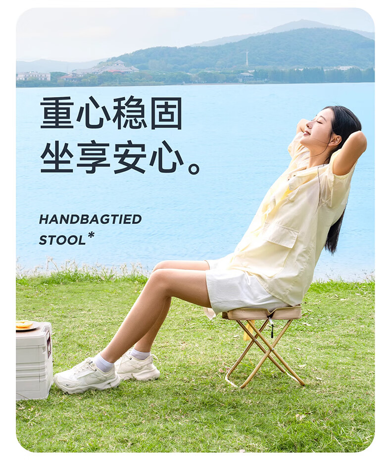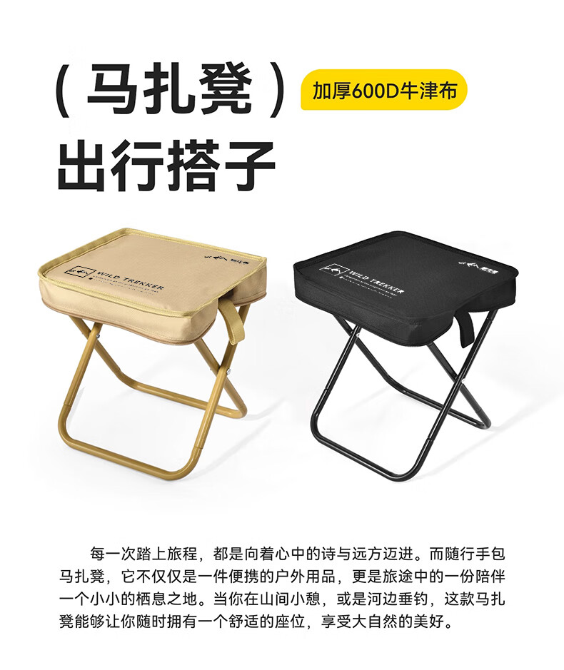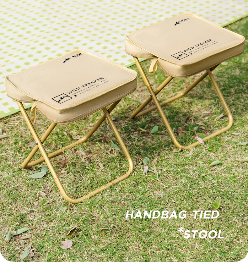 野徒者户外折叠凳子露营便携式小马扎折叠椅排队手包钓鱼椅子野餐用品 卡其色【超大号】 出口品质