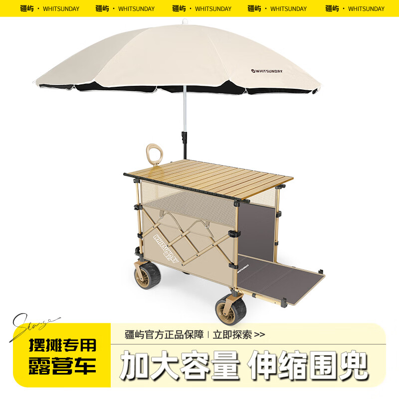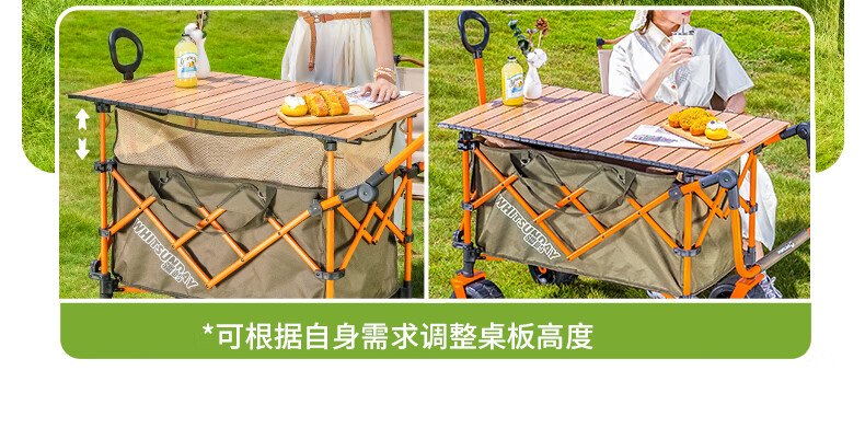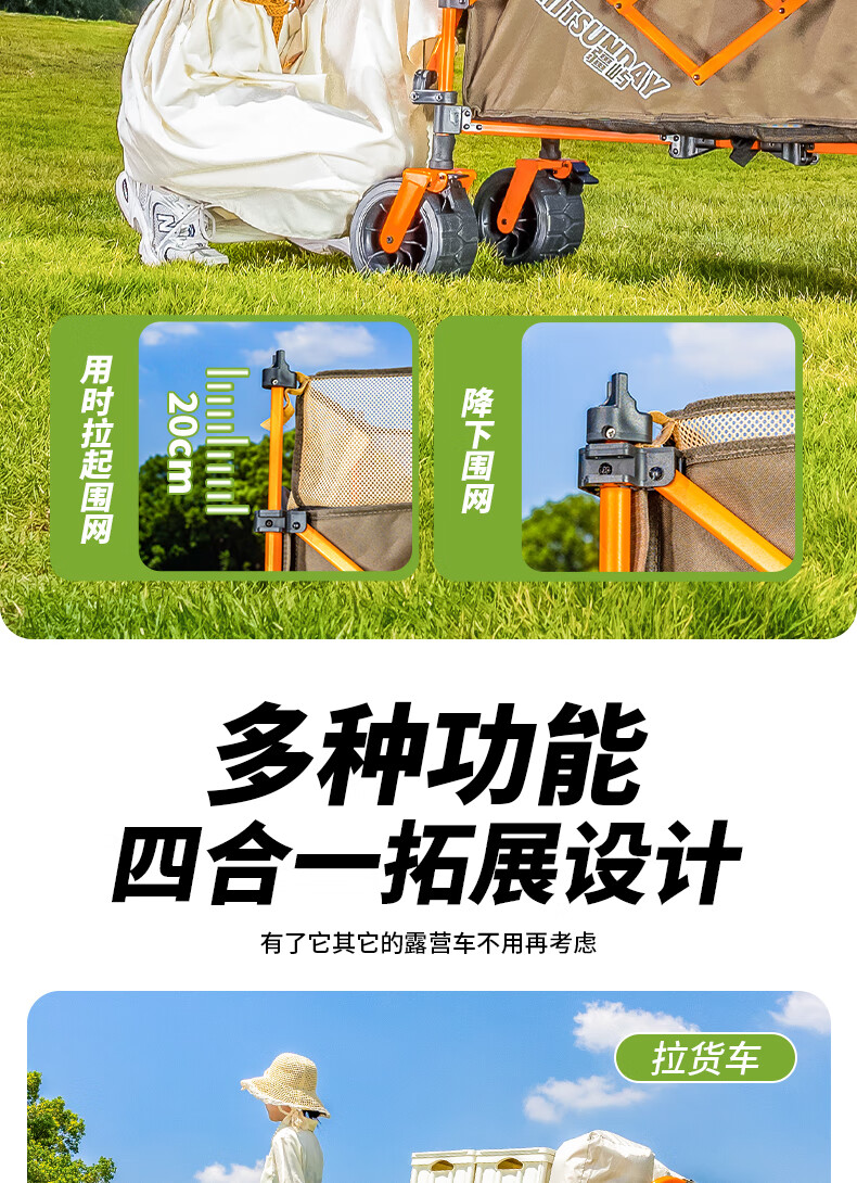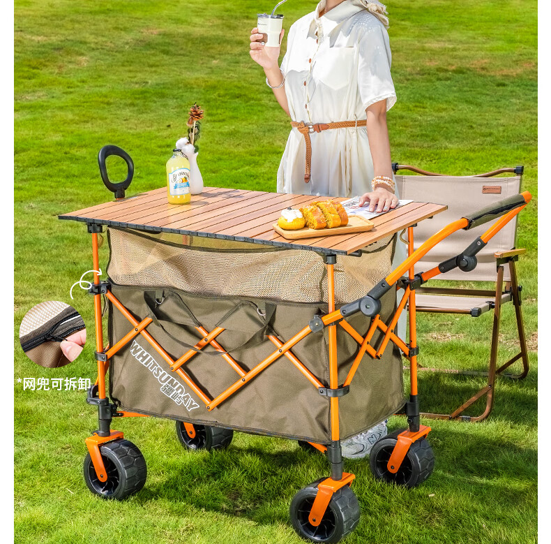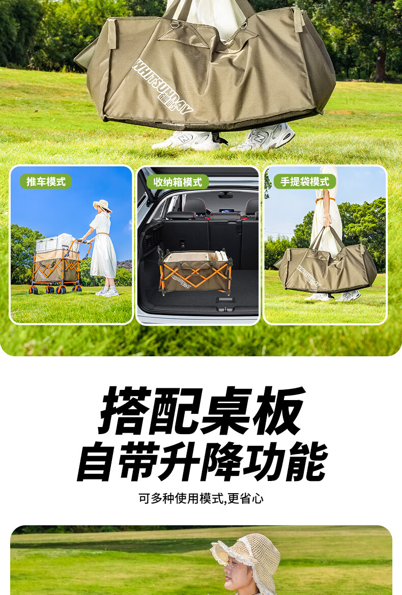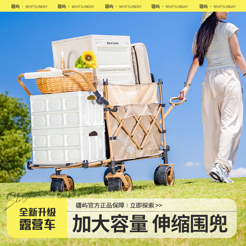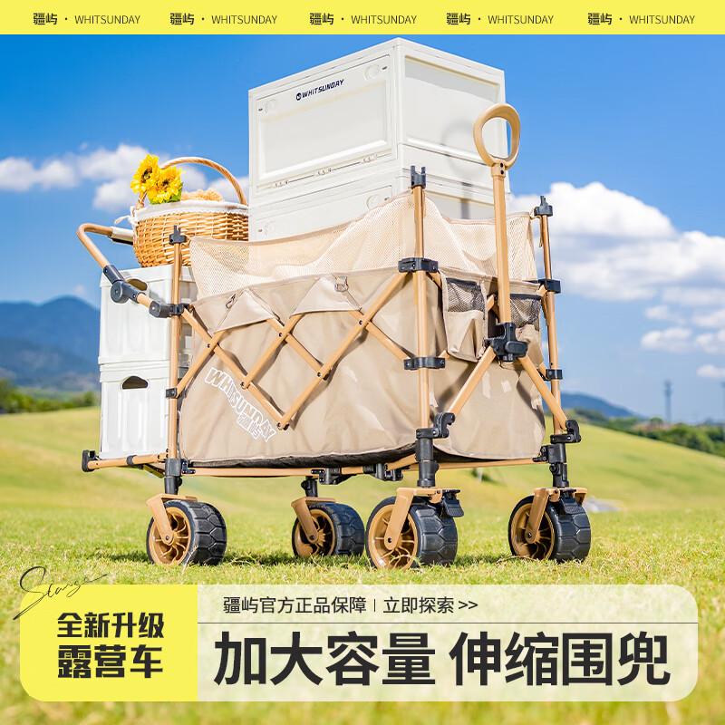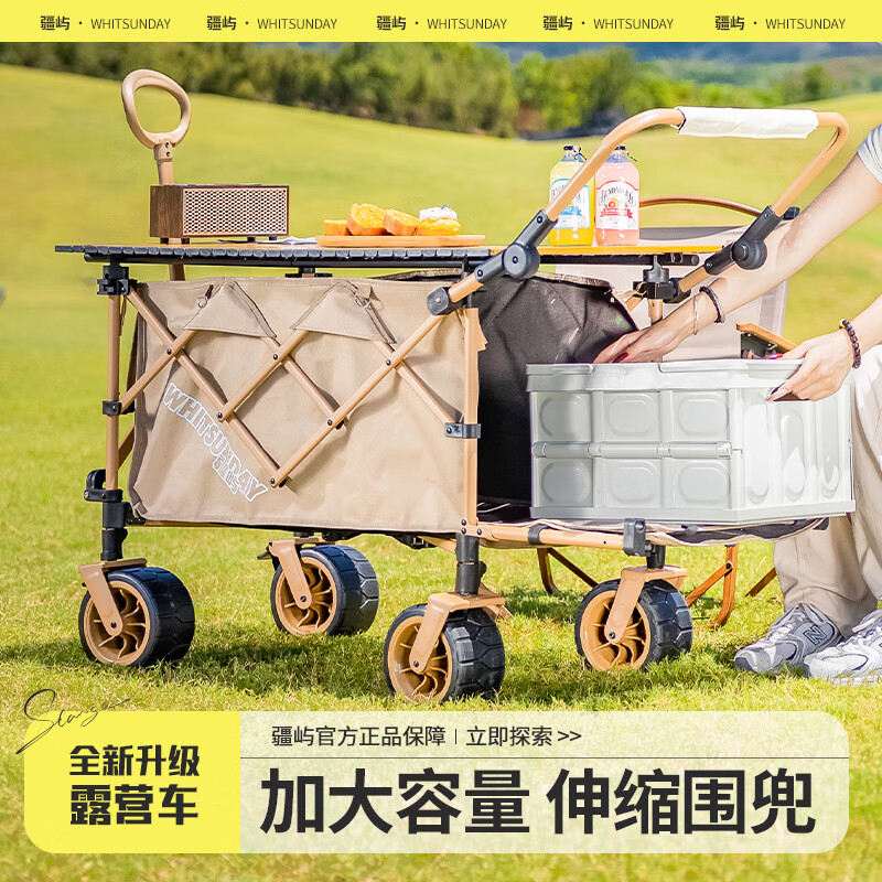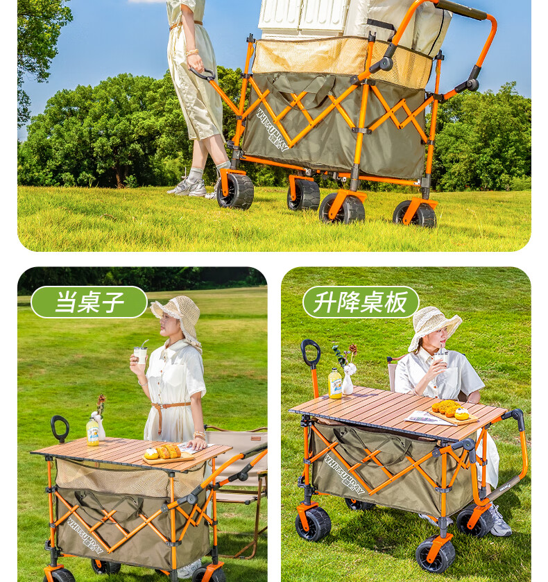 疆屿露营车户外折叠车营地车野餐摆摊野营拖车小推车儿童可躺旅行车 卡其聚拢升降款拖斗