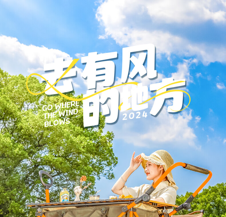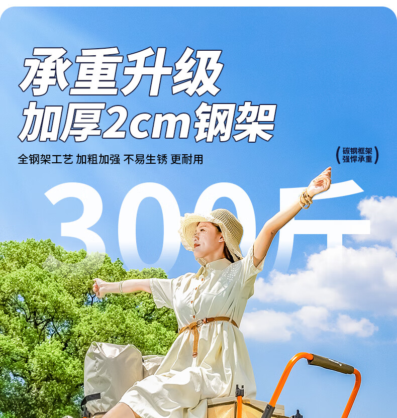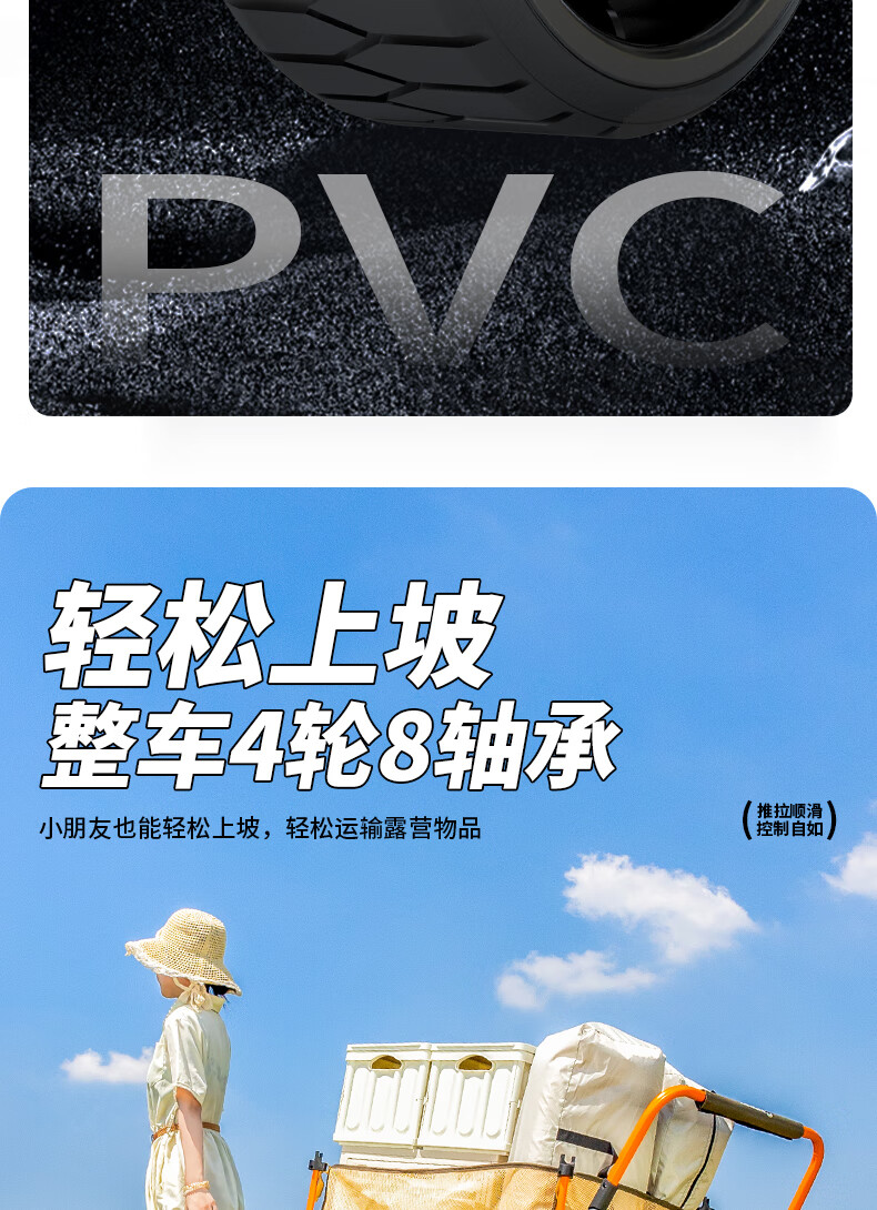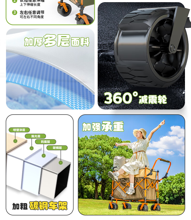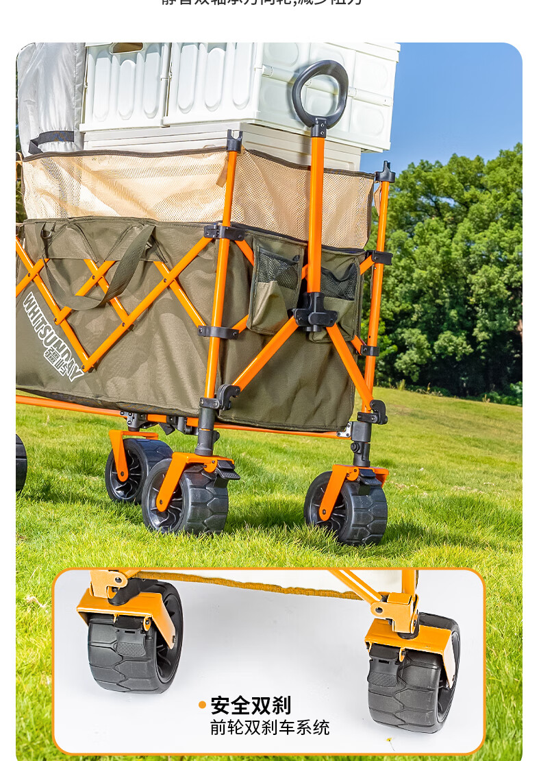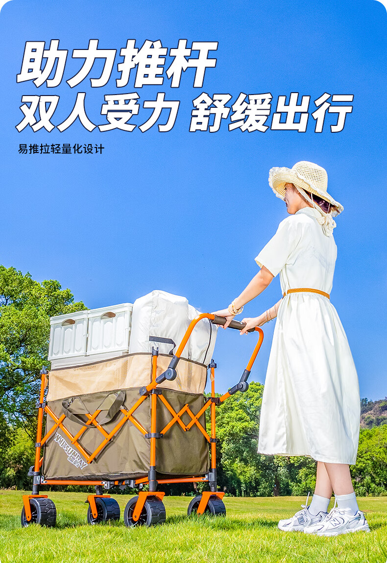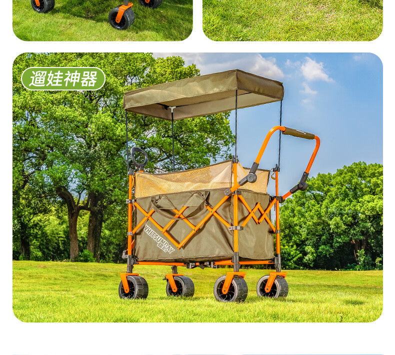 疆屿 户外折叠露营车超大儿童可躺遮阳防雨棚遛娃野餐营地旅行推车 聚拢后开珊瑚橙