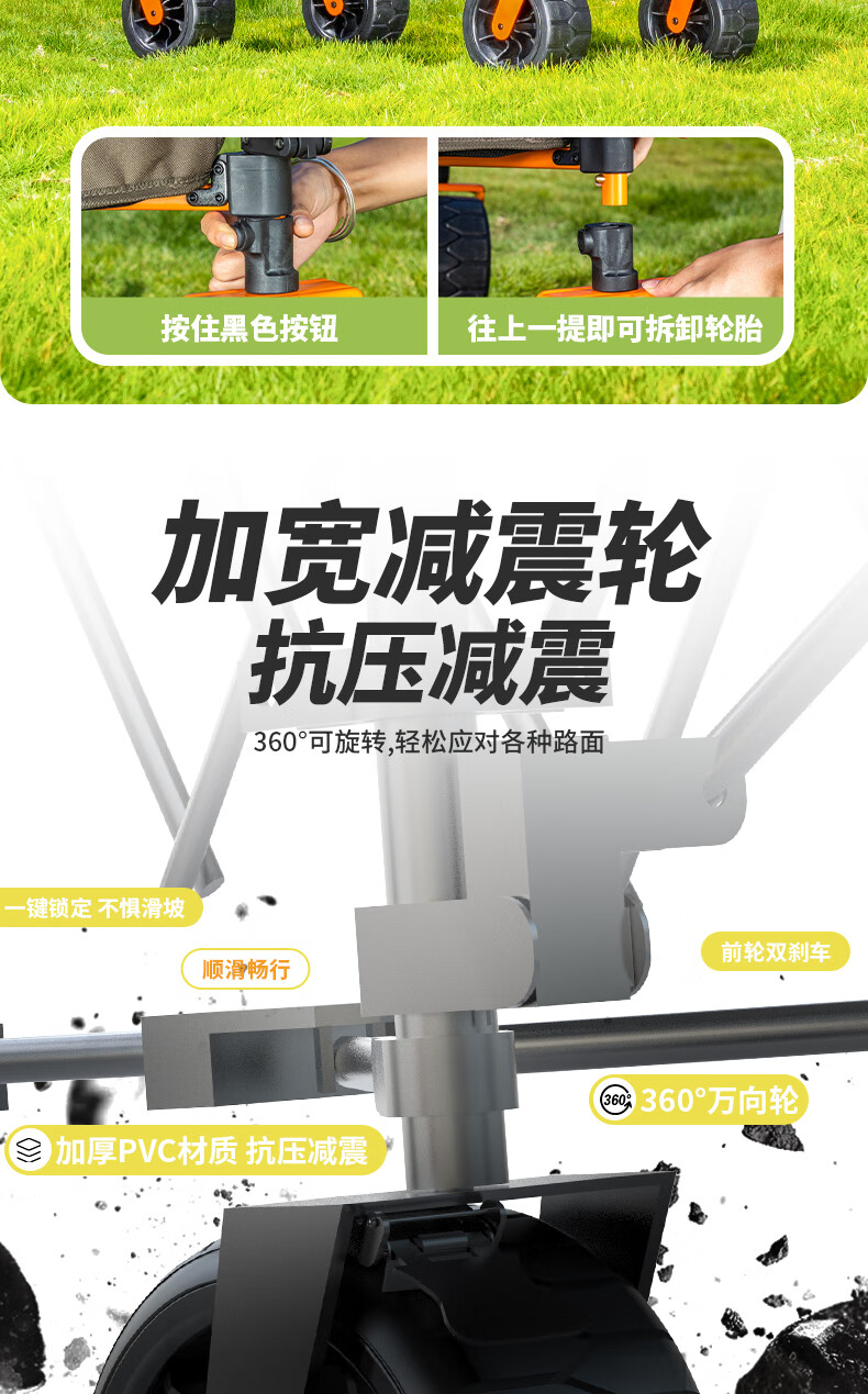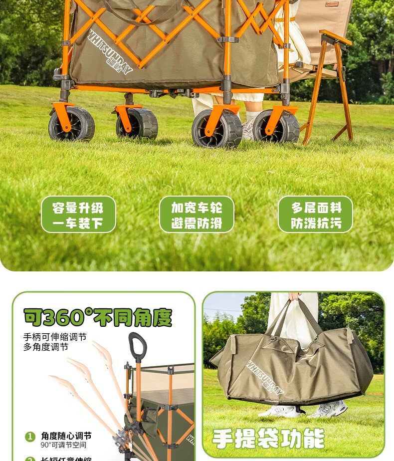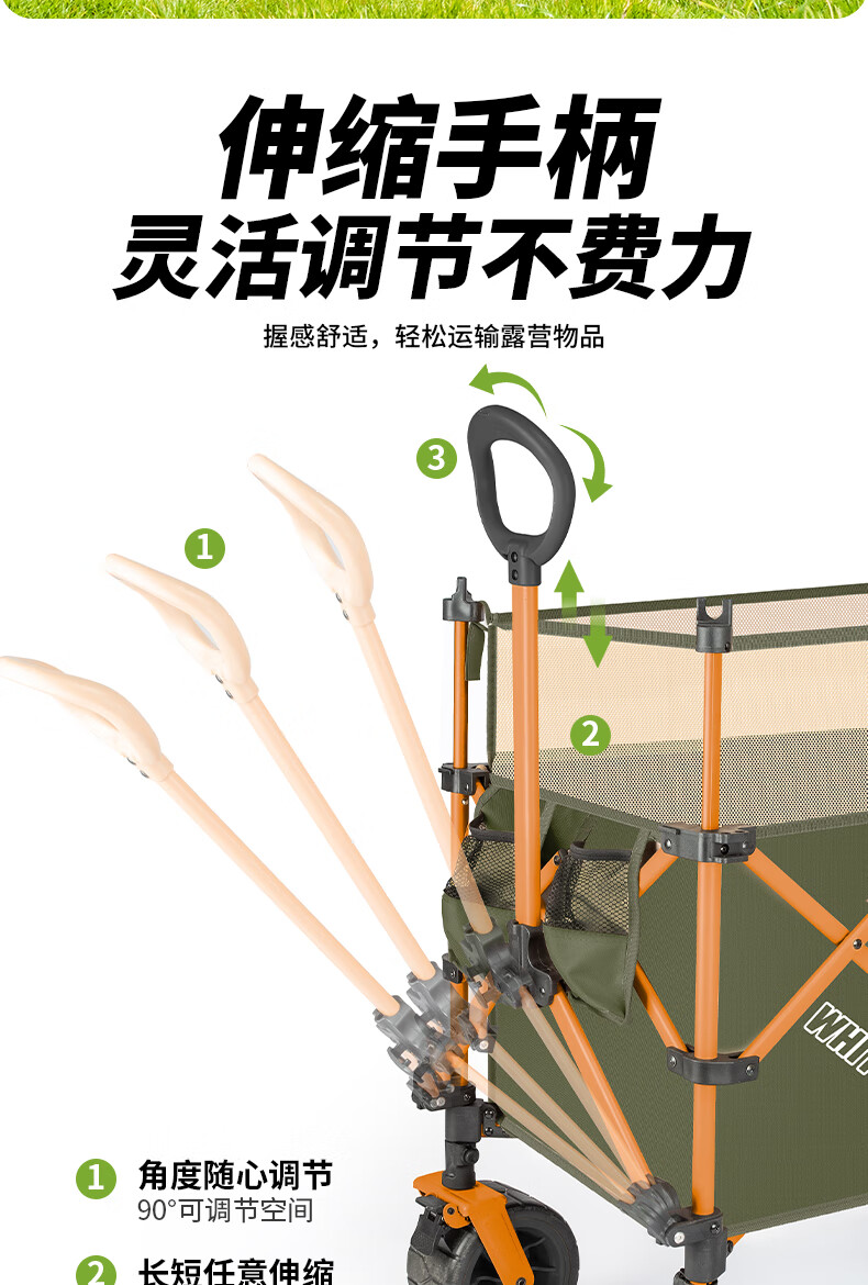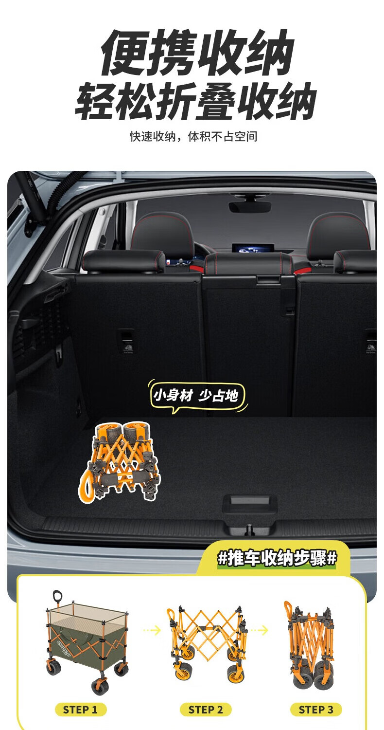 JEEP露营推车折叠野营手推车儿童可躺旅行车野餐推车摆摊地摊大号 石竹绿【推拉一体 升级大容量】