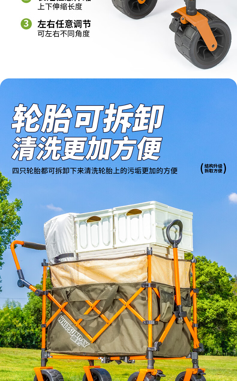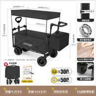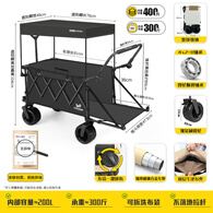 疆屿露营手车露营车营地车可折叠户外野营旅行野餐摆摊儿童可躺小拖车 黑色全地形+推杆+遮阳棚+尾兜
