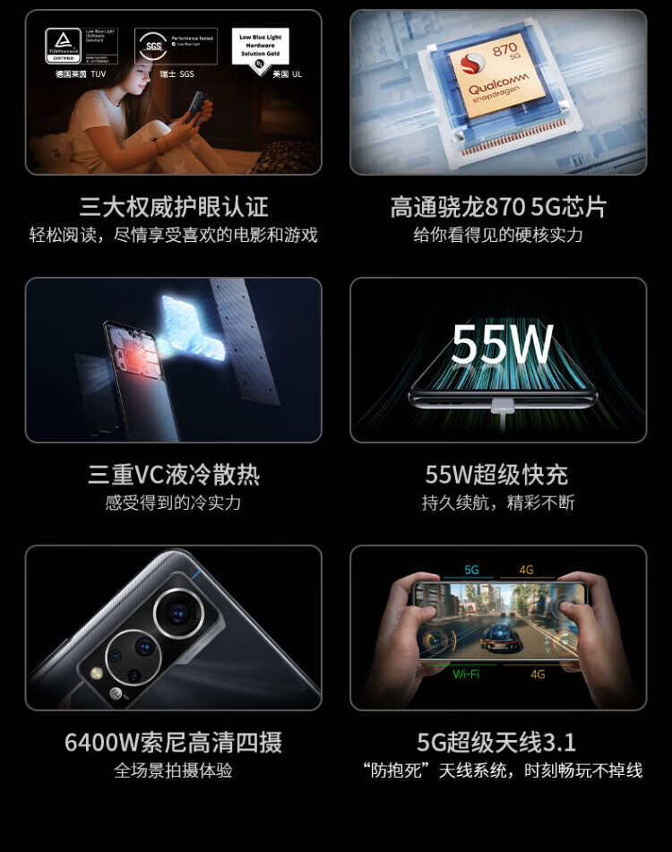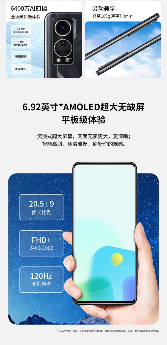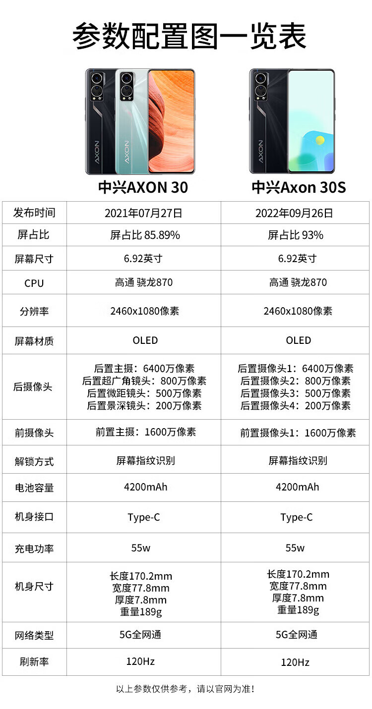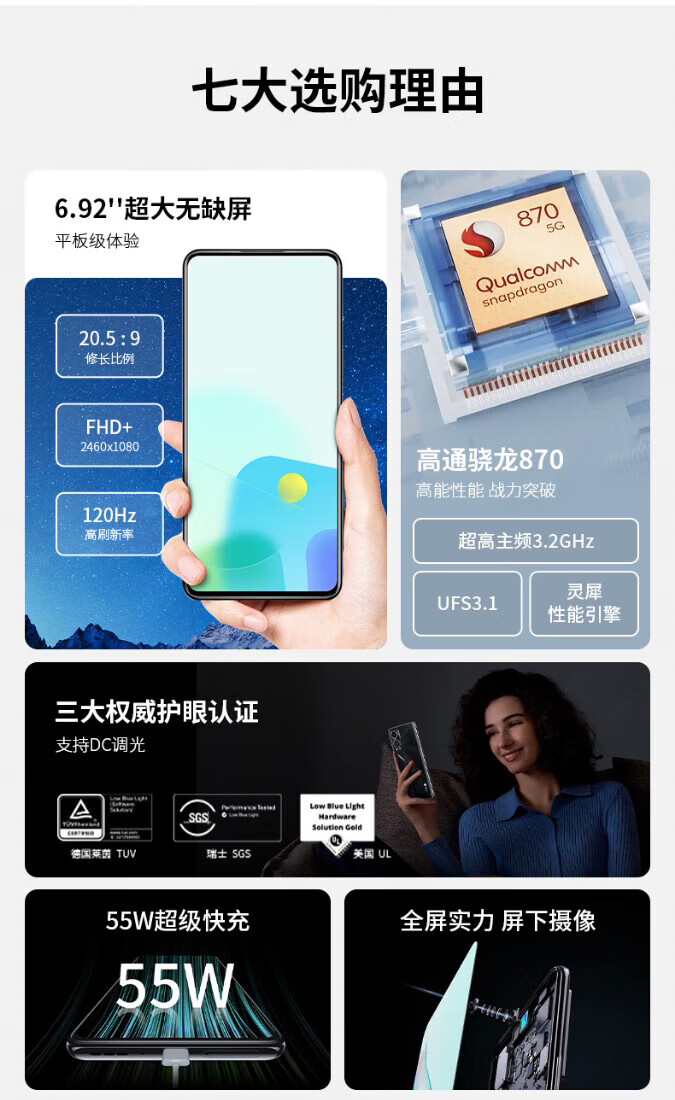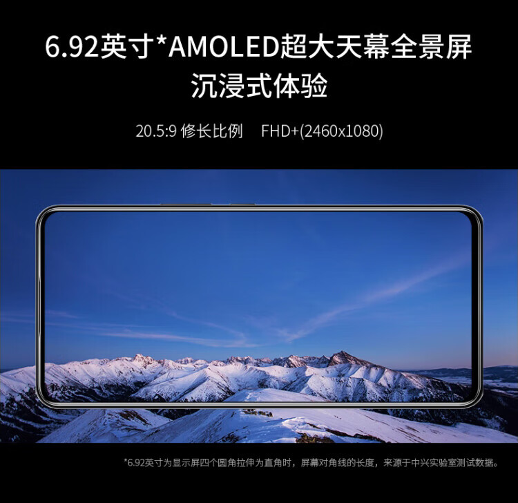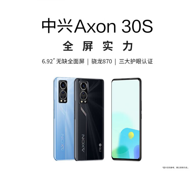 中兴Axon30 5G手机 骁龙870 6.92英寸 屏下摄像头 8G+512G 95成单机+充电器