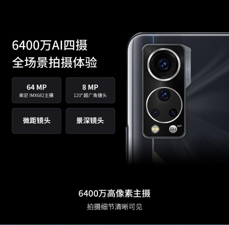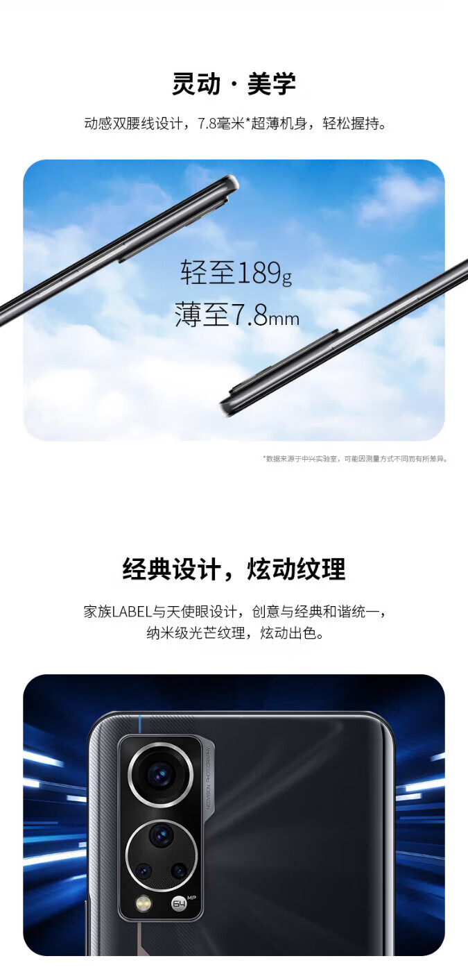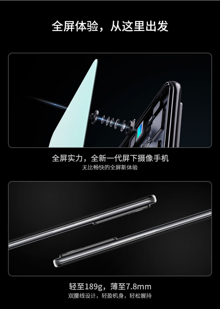 中兴Axon 30S全新一代屏下摄像A30游戏5G手机 Axon30S 夜幕黑 6GB+128GB